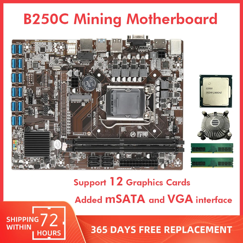 Комплект материнской платы B250C для майнинга BTC, комбинированный USB3.0 PCIE X16 LGA 1151 DDR4 процессор G3900 VGA mSATA, поддержка 12 графических карт, Майнер
