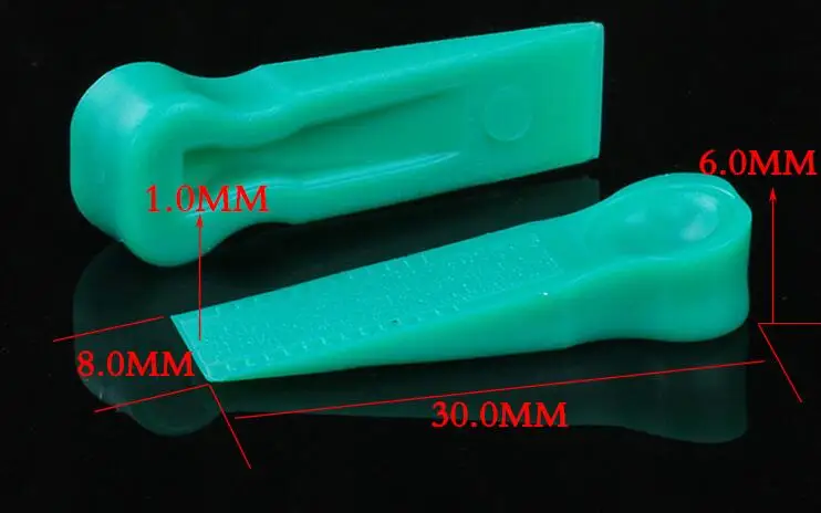 Особенности:100% новый и высокое качествоPE материал, зеленая охрана окружающей среды, безопасный и нетоксичный. Хорошая прочность, хорошая прочность на растяжение, нетоксичность, ударопрочность, влагостойкость, химическая стойкость, не легко лопнуть.В основном используется для выравнивания плитки при укладке плиткиРазмеры: д 30 x Ш 7,5 х 6 ммМатериал: ПЭТолщина: 6 мм