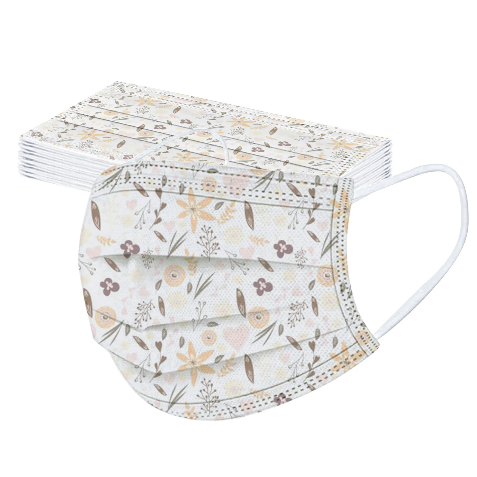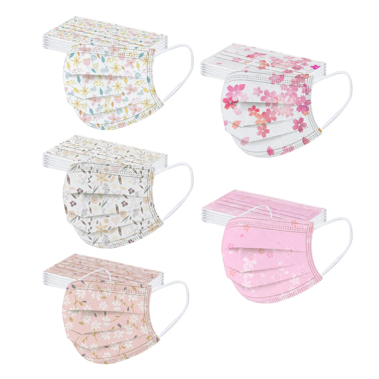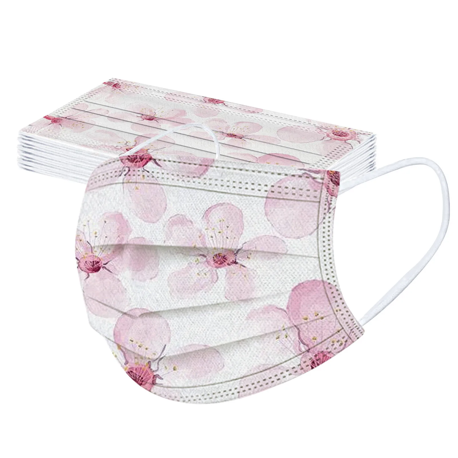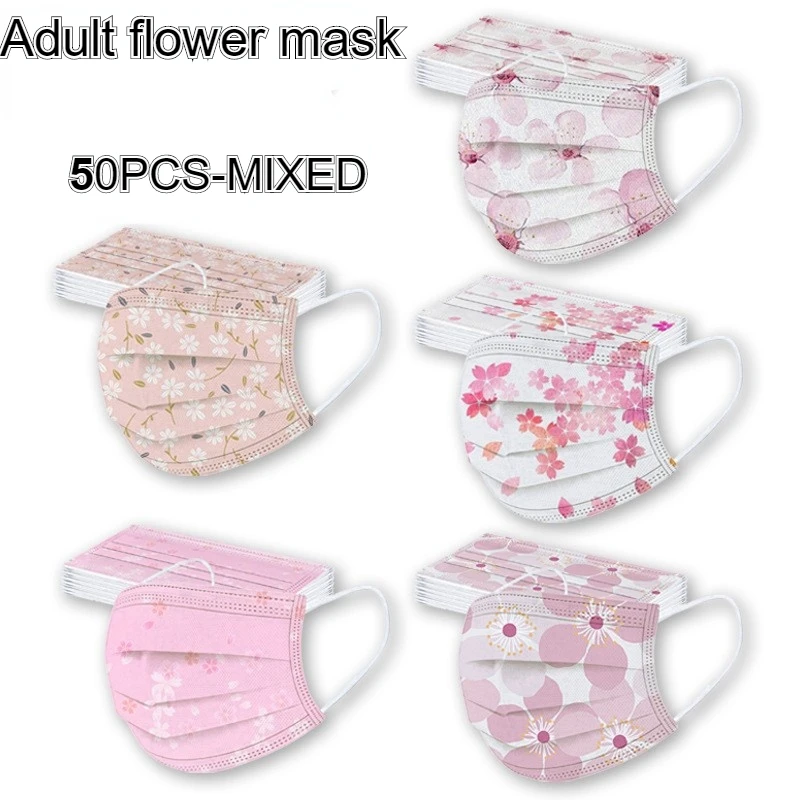 Новинка 2022 года, 50 шт., маски для взрослых, розовый цветок, одноразовая трехслойная защитная маска с принтом, маски для лица от вирусов, маски для лица, маски с короной