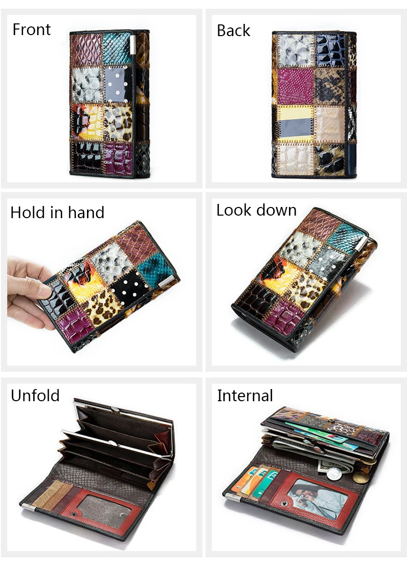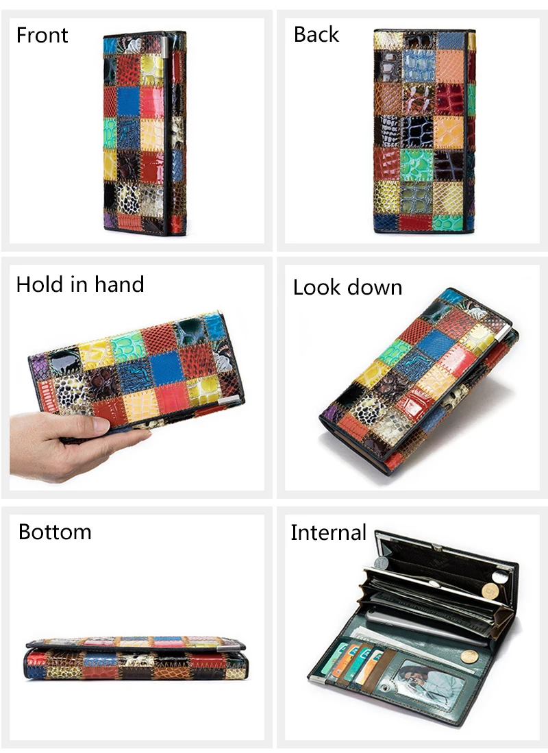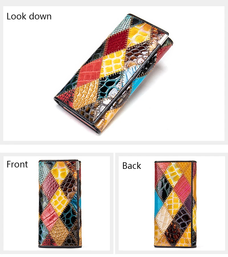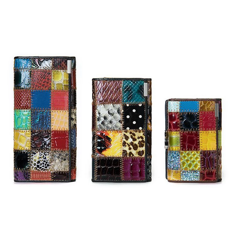 Женский кошелек из натуральной кожи в стиле пэчворк, Роскошный дизайнерский Длинный кошелек для сотового телефона, держатель для карт, Многоцветный кошелек для монет