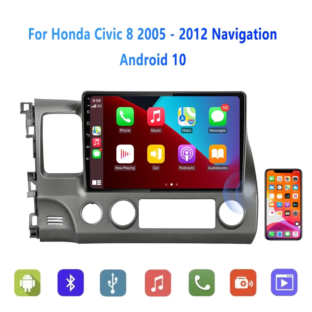 Автомагнитола PEERCE на Android 10 для Honda Civic 8 2005-2012, мультимедийный видеоплеер с GPS-навигацией, 2 Din, 4G, Wi-Fi, аудио, DVD