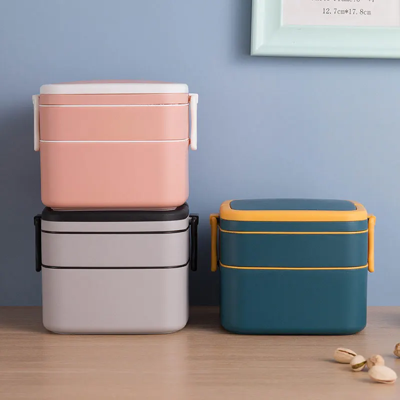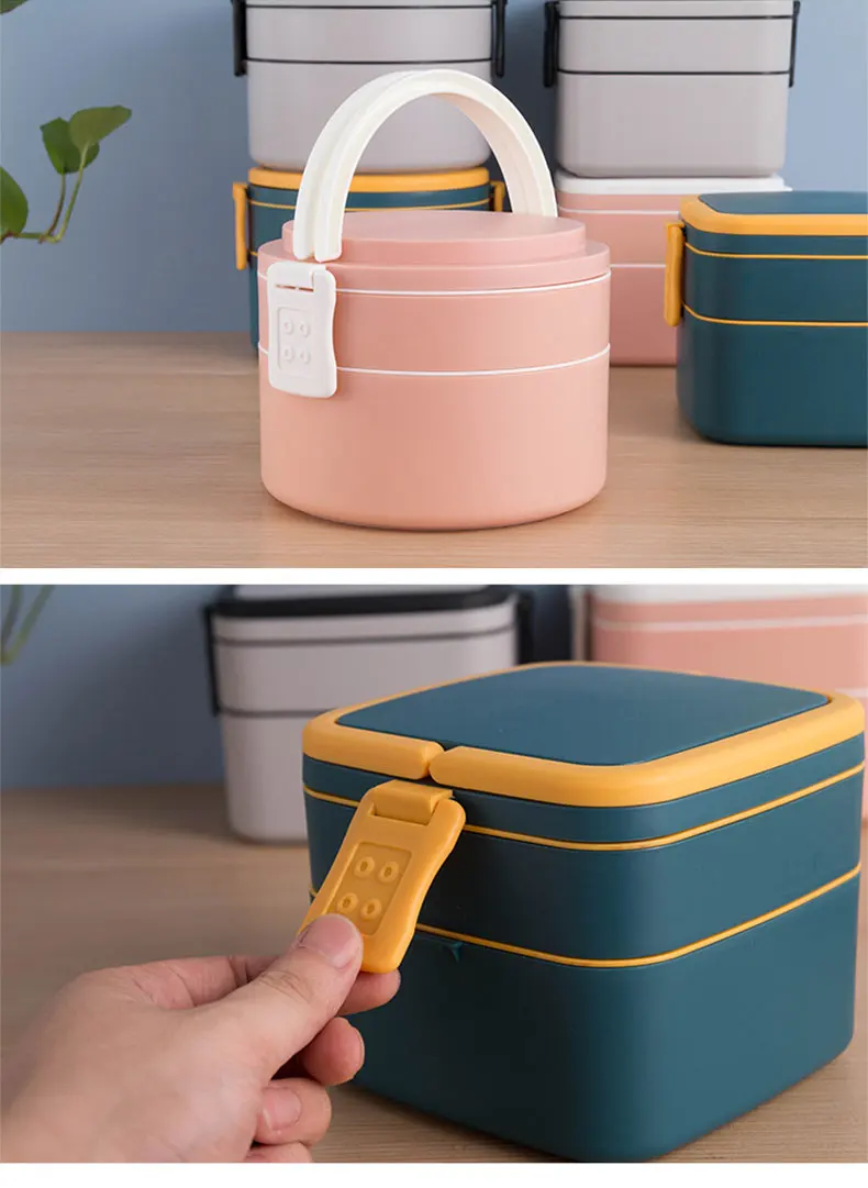 Двухслойный Портативный Ланч-бокс с крышкой, Ланч-бокс бэнто, Ланч-...