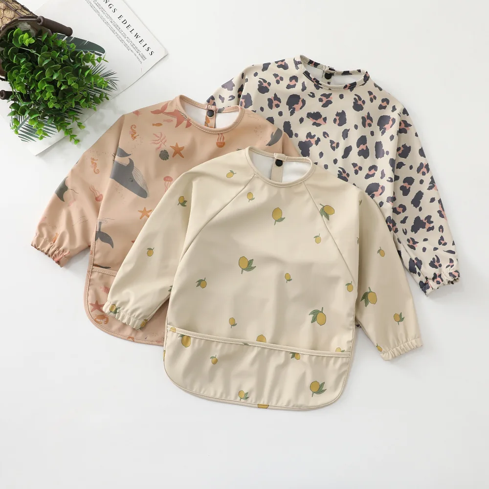 Легкая Одежда, нагрудник с длинными рукавами для малышей, нагрудники, художественные изделия, водонепроницаемые, Mealtime защита, моющиеся, легко моющиеся, для детей