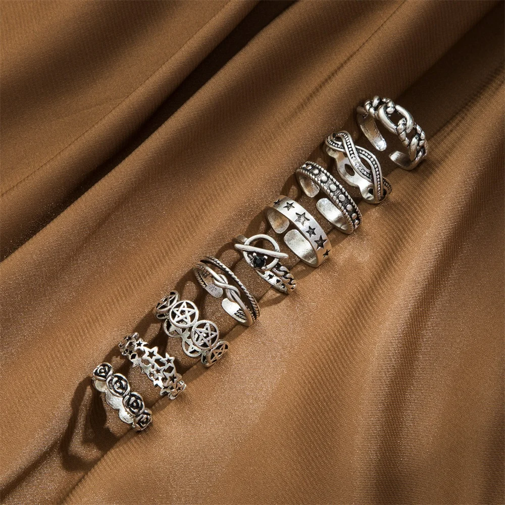 9 шт. Винтажное готическое кольцо с изображением бабочки и цветком, многоэлементное кольцо, набор для женщин и мужчин, ретро индивидуальное кольцо на палец, подарки
