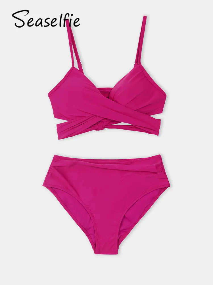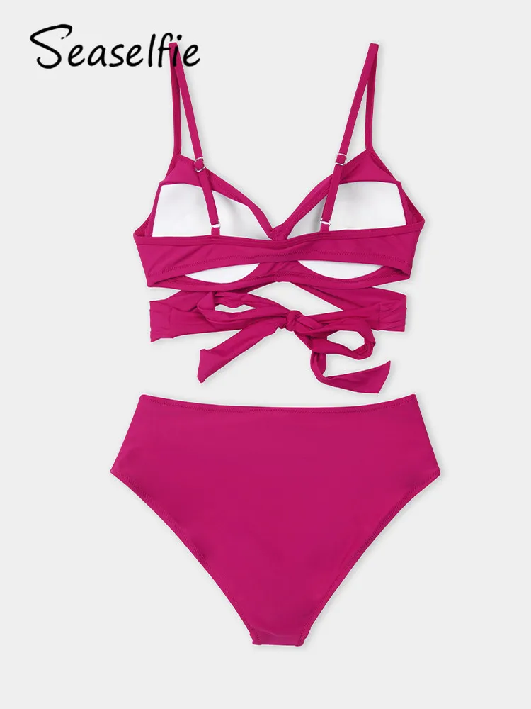 SEASELFIE пуш-ап с высокой талией комплекты бикини для женщин фиолетовые сексуальные кружевные купальники из двух частей 2022 пляжный купальный костюм Купальники