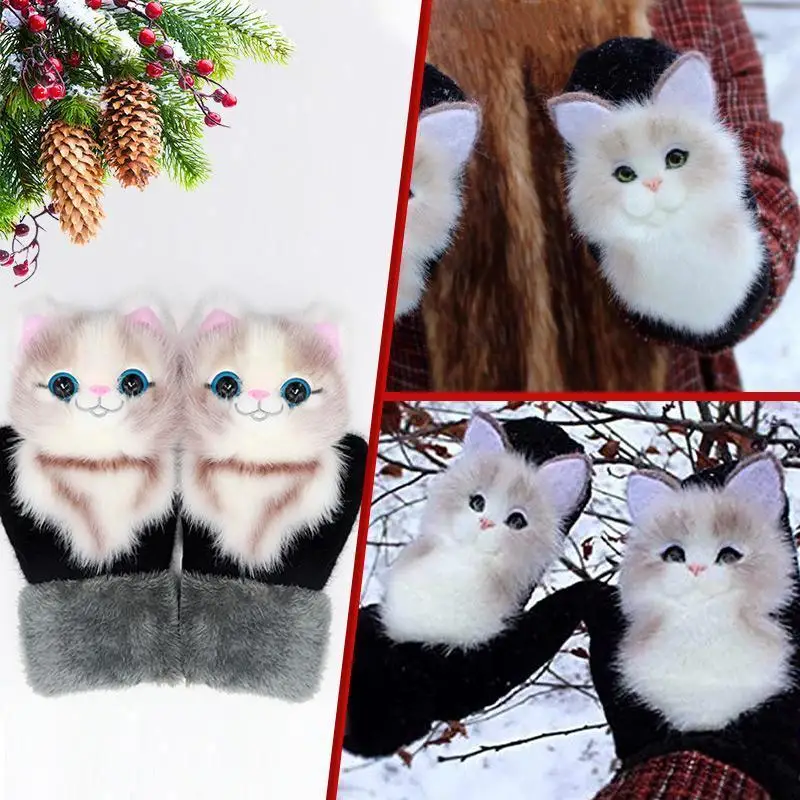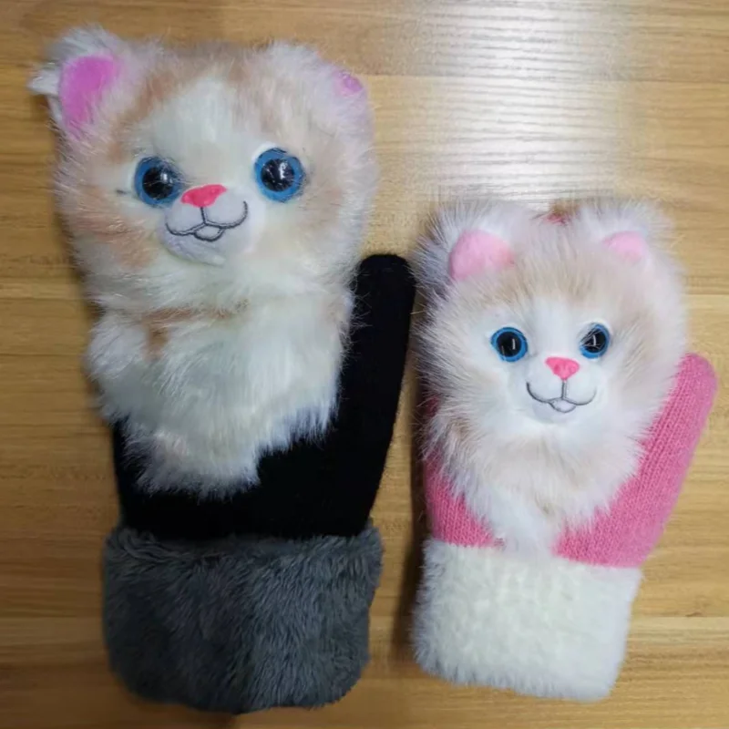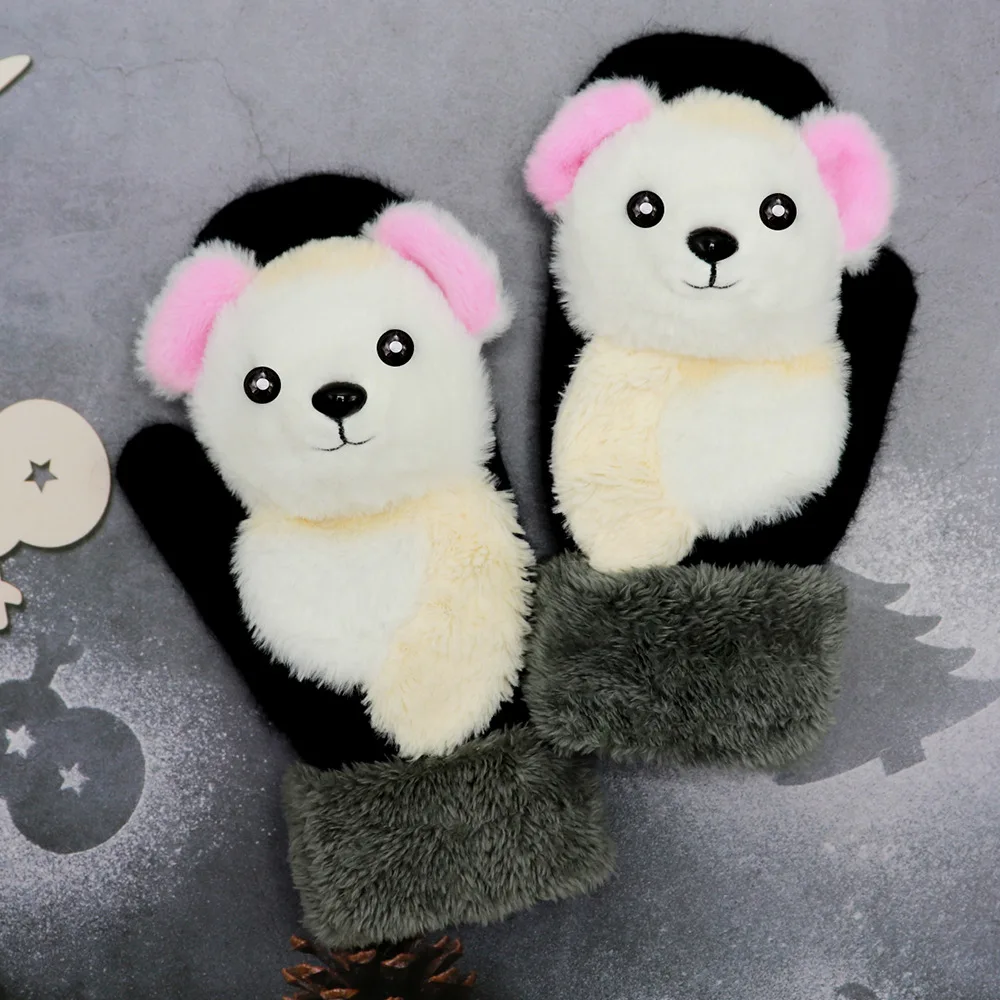 Зимние теплые перчатки с имитацией животных, длинные милые Плюшевые Пушистые варежки с полными пальцами, мягкие перчатки для мужчин, женщин, детей, Прямая поставка