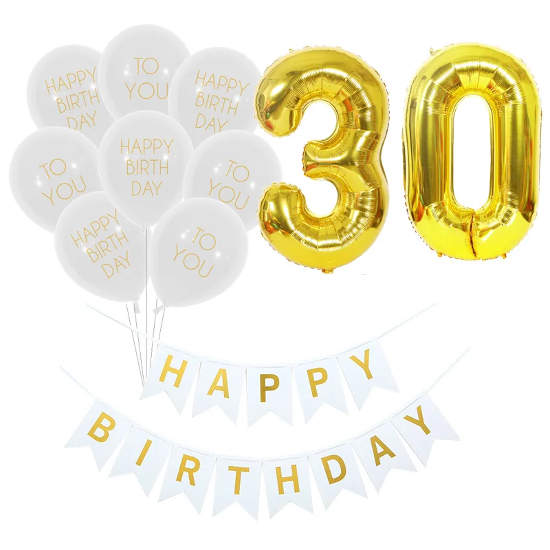 1 комплект, воздушные шары с белыми цифрами и надписью Happy 30, 31, 32, 33, 34, 35, 36, 37, 38, 39