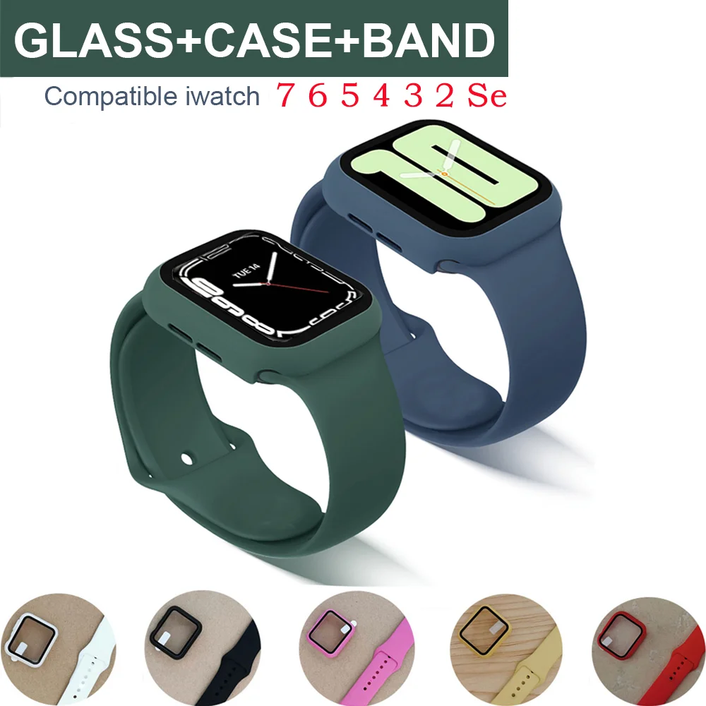 Стекло + чехол + ремешок для Apple Watch band 44 мм 40 мм 38 мм 42 ...