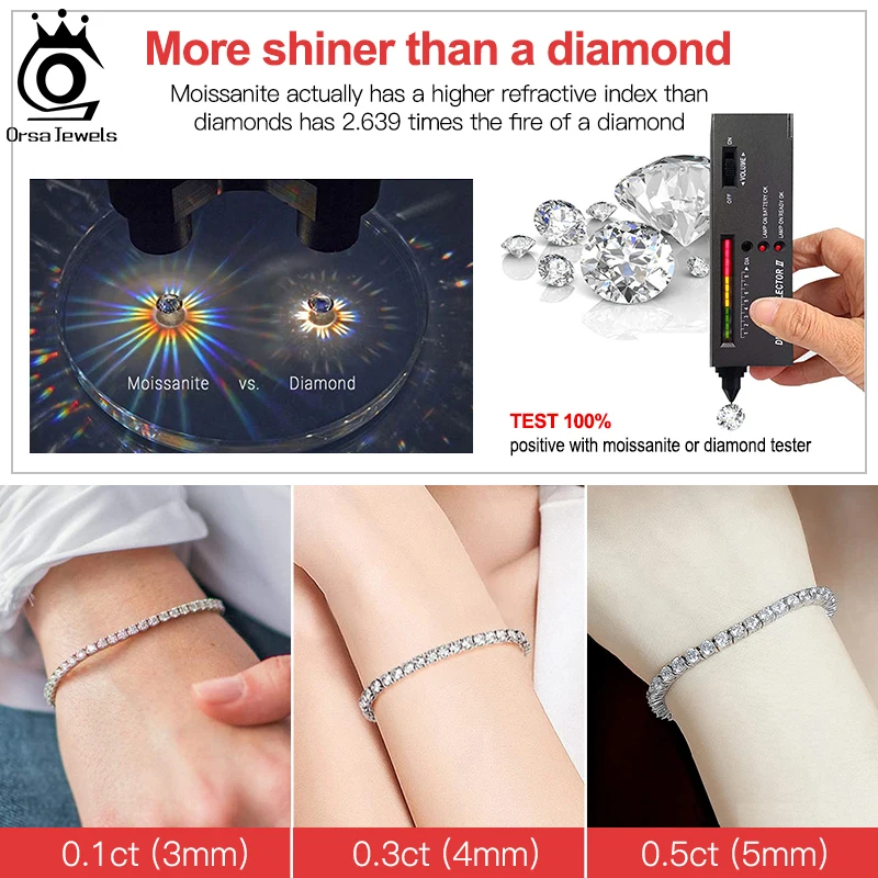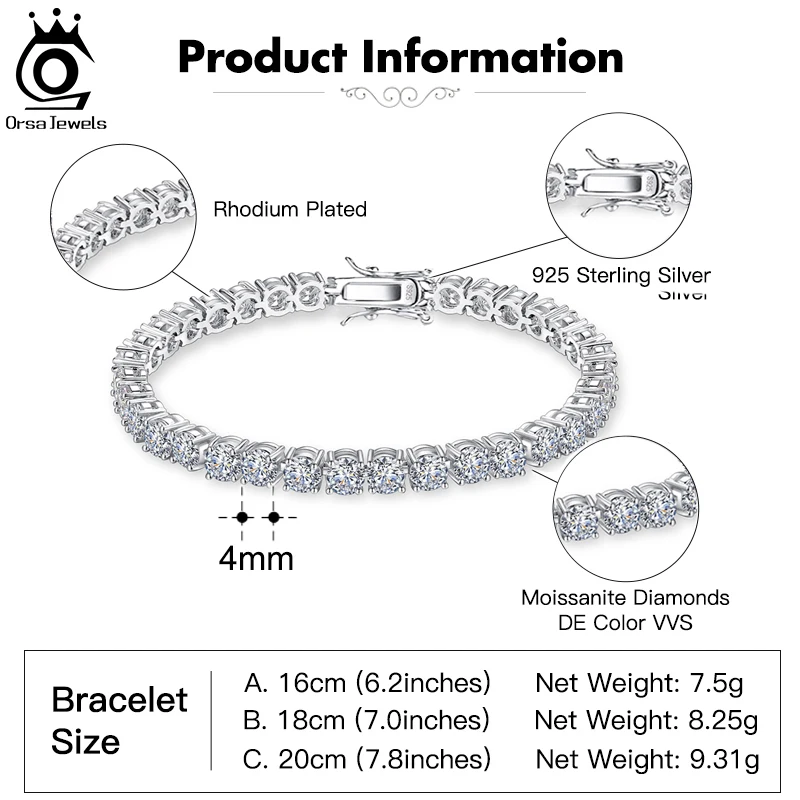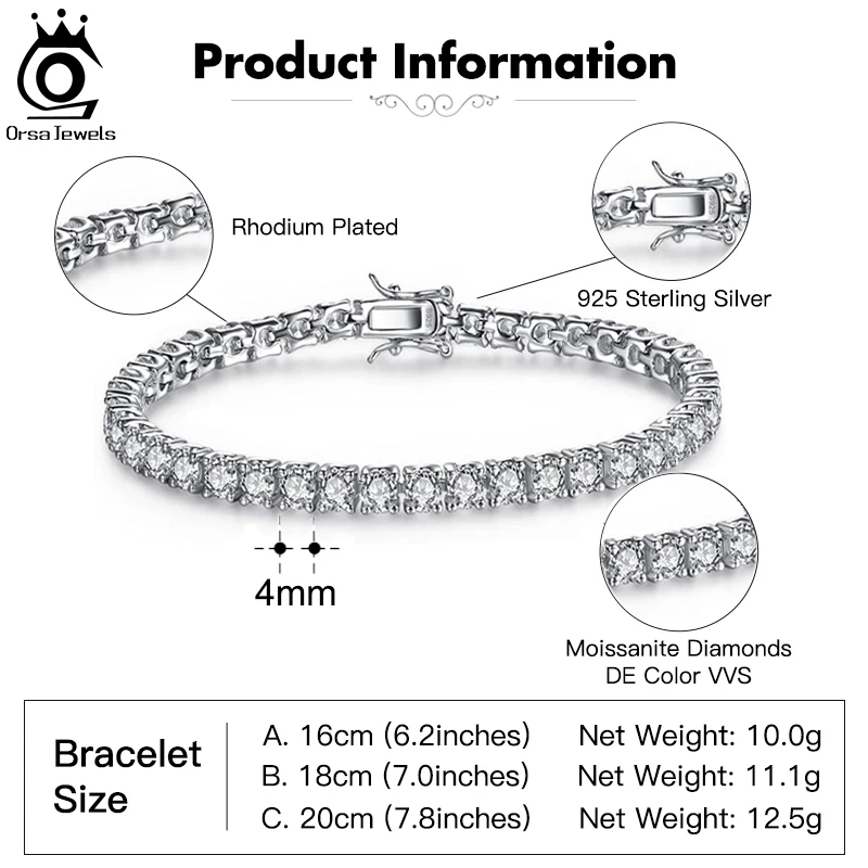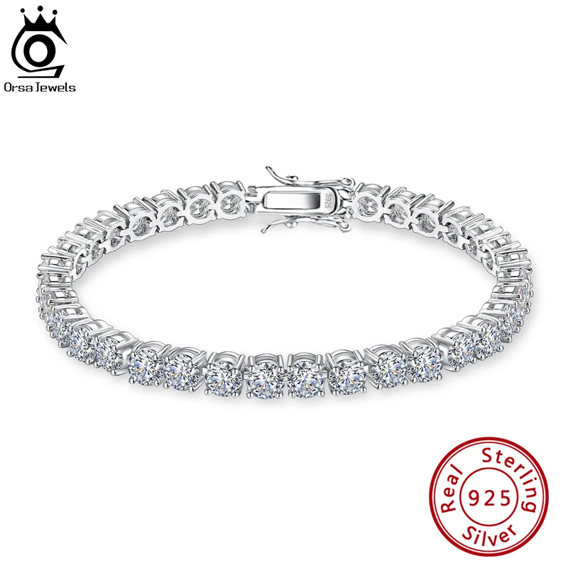ORSA JEWELS 4 мм настоящий Теннисный браслет из муассанита с бриллиантами, серебро 925 пробы, D Цвет, бриллиантовый тестер, GRA сертификат SMB06