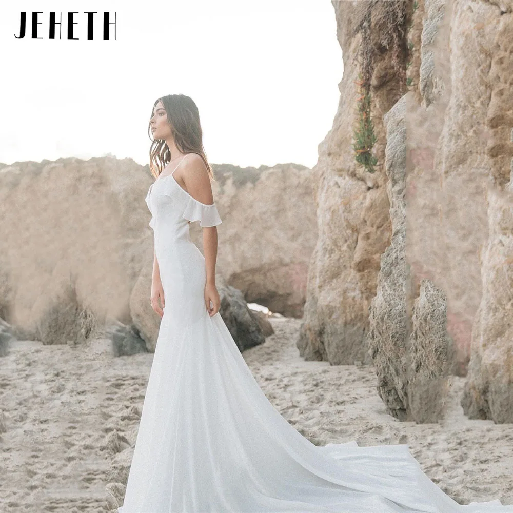 Шифоновые Свадебные платья JEHETH на бретелях-спагетти с V-образным вырезом в стиле бохо с юбкой-годе 2021 кружевное пляжное платье для невесты