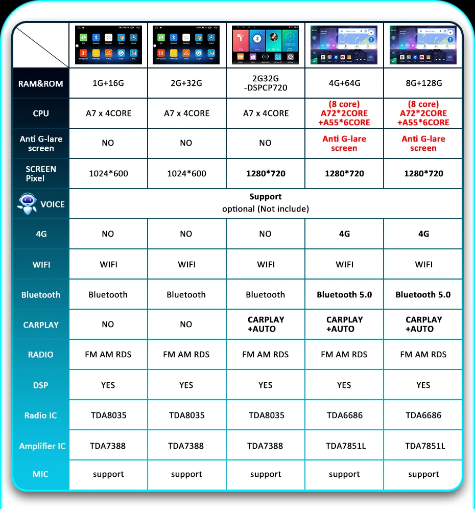 Экран 1280*720P IPSЭто Радио имеет два вида экрана-1024*600P HD экран и 1280*720P супер HD экран. Экран 1280*720 ярче и ярче обычного hd-экрана. Вы можете выбрать тип по вашему желанию.