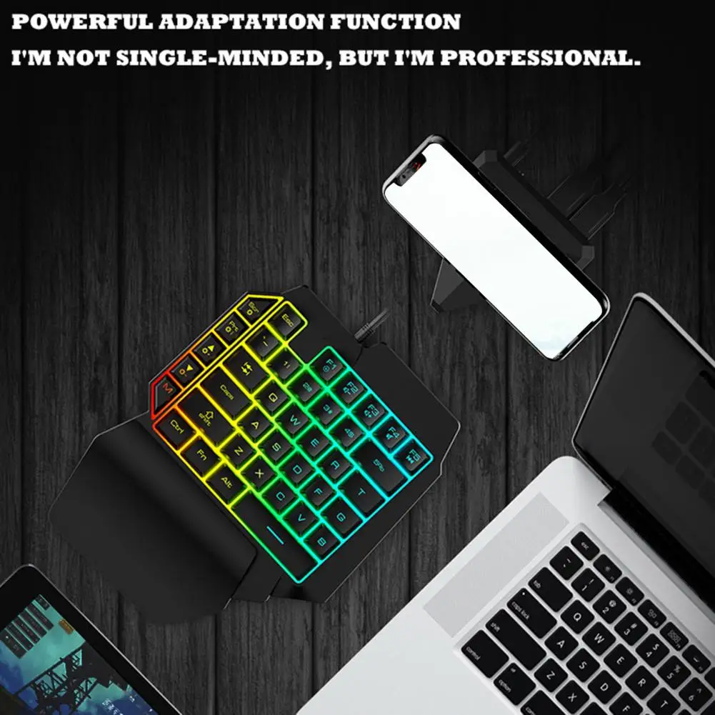 K15 клавиатура светящиеся персонажи сильная устойчивость RGB с одной рукой Механическая игровая клавиатура для компьютера Описание: Привлекательный эффект освещения позволяет каждому стуку ослепить. Увеличенная и Расширенная интегрированная подставка для ладони обеспечивает поддержку свисающего запястья. Плавающий колпачок, удобная перкуссия и сильная устойчивость. Он имеет мощную адаптационную функцию, которая может адаптироваться к основным симуляторам на рынке. Изготовлен из высококачественного АБС-пластика и металлического материала, он прочный в использовании. Длина клавиатура является 25,5 см, ширина 18,2 см Высота 2,5 см. Подходит для компьютерных игр. A-это игра для мира, а B-обычное издание. Название товара: клавиатура Материал: АБС-пластик, металл Срок службы: >50 миллионов раз Операционной Напряжение:> 1,5 кг Тип интерфейса: USB Рабочий ток: <200 мАч Провод Длина: 1,5 м Количество ключей: 39 шт. Клавиатура силы:> 1,5 кг Версия: A: издание Игры для мира, B: обычное издание Материал ключа: АБС двухцветная инъекция Информация о размере: 25,5 см x 18,2 см x 2,5 см/10,04 "x 7,17" x 0,98 "(прибл.) Примечания: Благодаря светильник и экрана Цвет Товара может быть s светильник ly отличается из-за характеристик монитора компьютера. Возможны незначительные отклонения в размерах из-за различных измерений вручную. Посылка включает в себя: 1 X клавиатура