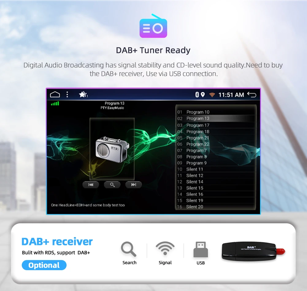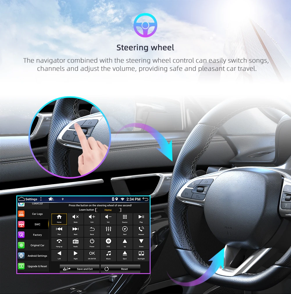 FeaturesCapacitive touch screen,Steering Wheel Control,Mic,Speakers,USB,SD