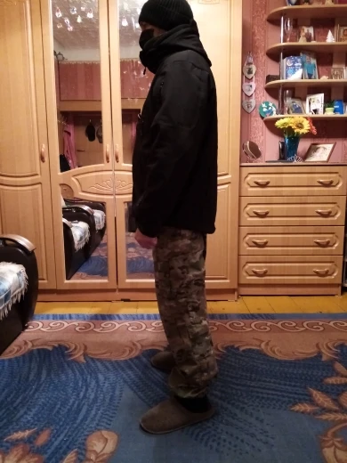 Здравствуйте, курточка пришла очень очень быстро, т. к. доставка из России. Курточка хорошая, ниток по минимуму. Товаром с точки зрения цена-качества удовлетворён полностью. Мой рост 170см, вес 83-85кг,размер заказа 2XXL.В теле можно было-бы XL, но тогда общая длина возможно была короткова, да и с руковами можно было пролететь. Исходил из данных в таблице, у меня есть такая куртка только флис, измерил её и прикинул по таблице. На фото под курткой тонкий свитер и тончайшая ветровка, все классно, можно на тонкий свитер, на майку будет висеть. Как то так. А так Россия+Китай=ДРУЖБА.
