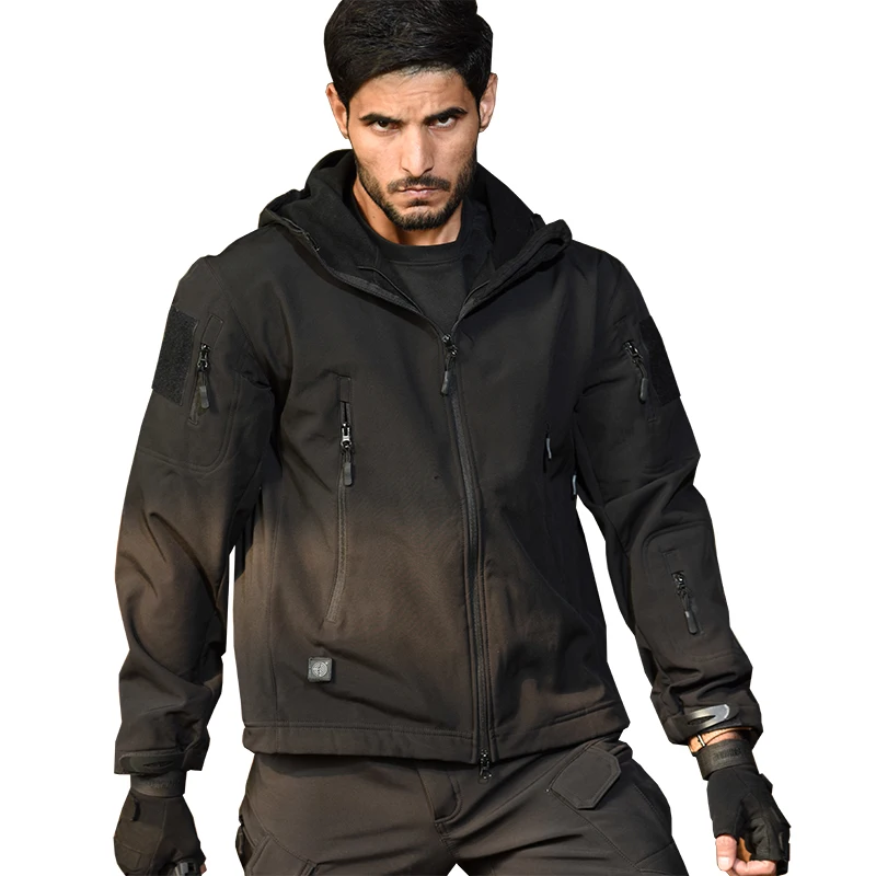 Мужская тактическая ветрозащитная водонепроницаемая куртка в стиле милитари из кожи акулы с капюшоном
