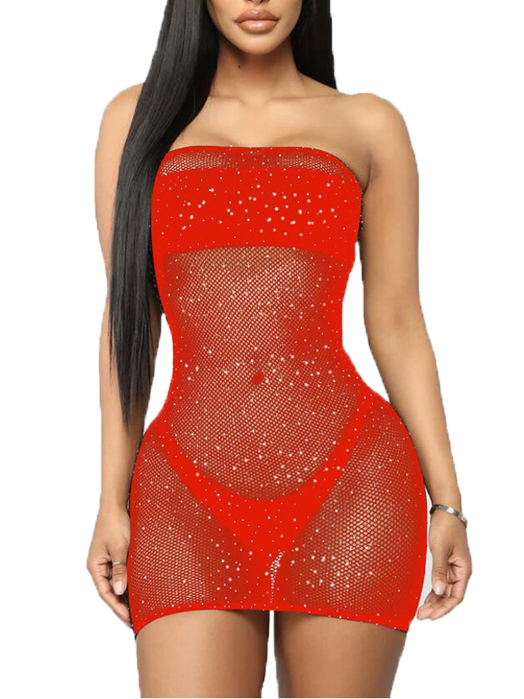 Женская сетчатая ночная рубашка, пикантная сетчатая прозрачная Очаровательная ночная рубашка с блестками, высокая эластичность, для отдыха, Женская домашняя одежда без бретелек