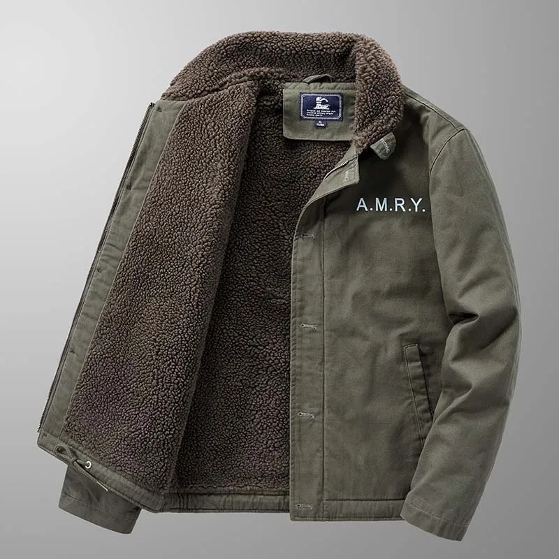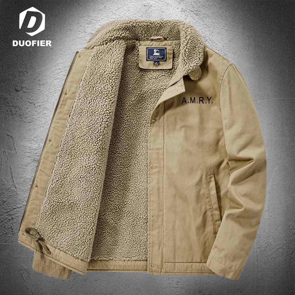 Мужская зимняя куртка из овечьей шерсти, теплая Повседневная куртка...