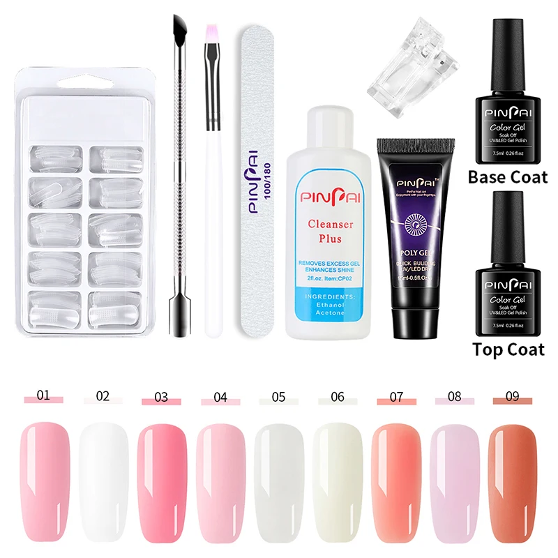 Наименование товара: поли набор гелей для ногтейТип товара: удлиняющий гель для ногтейСпецификация:1,15 мл поли гель для ногтей + Толкатель для ногтей + UV щетка2. Верхнее пальто + Базовое пальто,3. Пилка для ногтей + жидкость для ногтей + зажим для ногтейОсобенности: гель-инструменты для создания ногтей, подходит для дома или салонаНапоминание:1. Вес нетто 15 г. Но емкость бутылки составляет более 15 г, гель не будет полностью заполнен в бутылке2. Разница в цвете может быть вызвана некоторыми причинами, такими как отражение цвета в освещении монитора, фона и т. д.3. Когда вы окрашиваете ногти, пожалуйста, также окрашивайте край ногтя, он будет более прочным, долговечным и не забудьте использовать верхнее Базовое покрытиеКак использовать1. Нанесение базового покрытия, лечение под УФ или Светодиодная лампа2. Выберите подходящие накладные ногти3. С помощью УФ-кисти окуните маленькую жидкость для ногтей4. Нанесите поли гель равномерно, наклейте его на ногти полностью и Используйте УФ или Светодиодная лампа для сушки5. Ложные Советы6. С помощью пилочки для ногтей7. Нанесите тонкое пальто и высушите его
