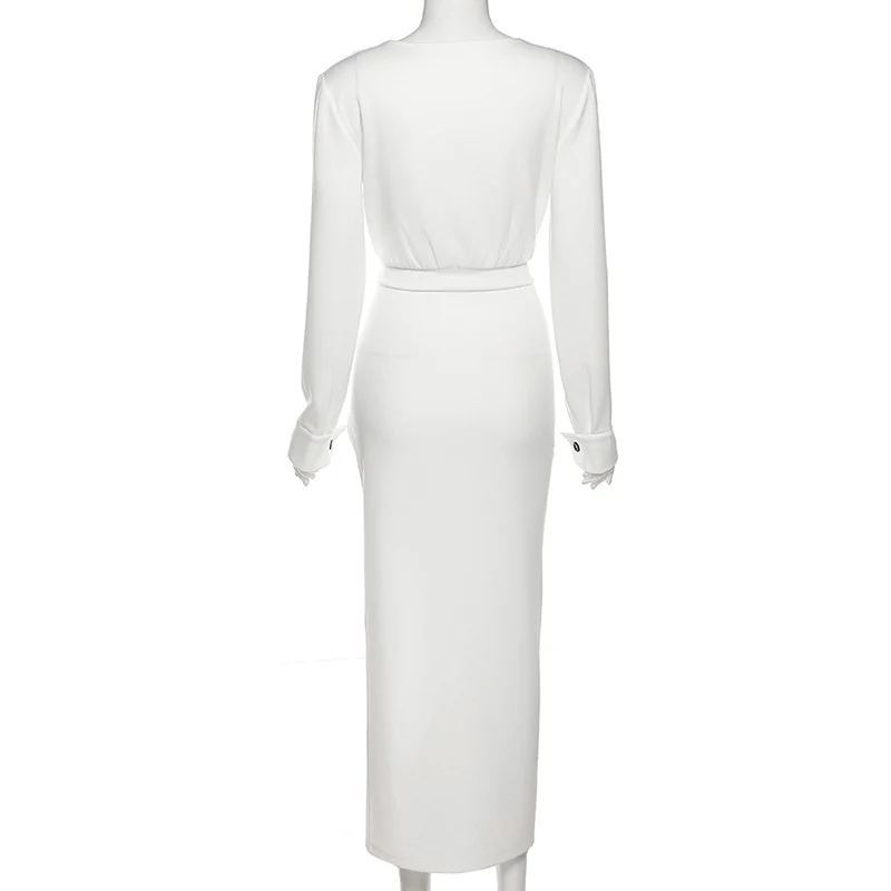 2021 Красная рождественская праздничная одежда, Элегантное Белое Облегающее длинное платье с длинным рукавом для женщин, сексуальные вечерние платья макси с разрезом