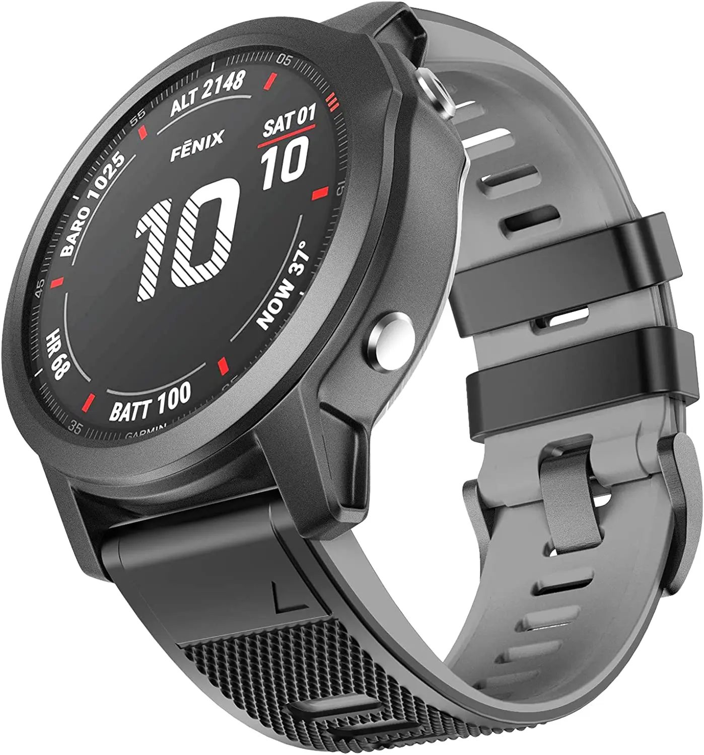 22 ммСменный ремешок quick fit совместим с garmin fenix 6,fenix 6 pro, fenix 5, fenix 5 plus, forerunner 935, forerunner 945,approach s60, approach s62,quatix 5,quatix 6. Примечание: он совместим только с 22 мм шириной ремешка, не для 26 мм, и он не подходит для fenix 6x/6x pro/5x/5x plus!