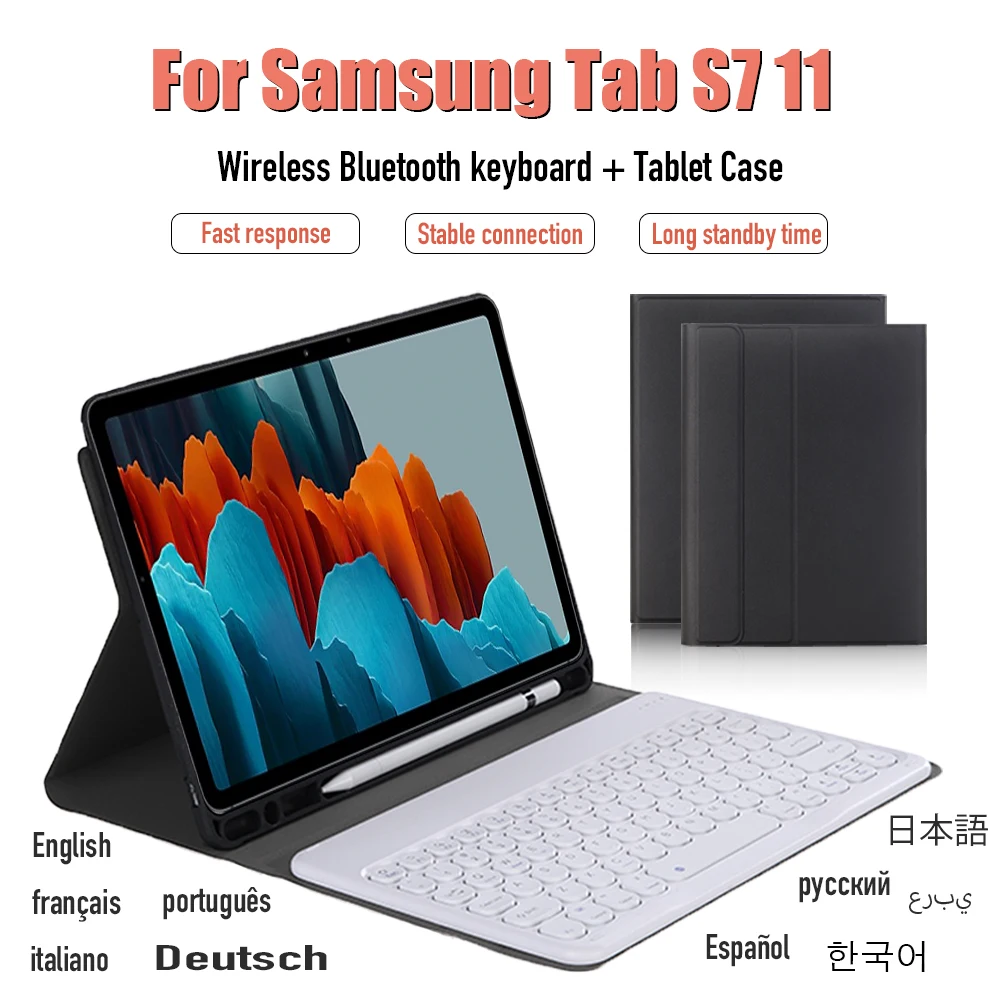Беспроводной чехол для клавиатуры Bluetooth для Samsung Galaxy Tab S7 11 дюймов SM-T870 T875 2020 пыленепроницаемый кожаный чехол Аксессуары для планшета