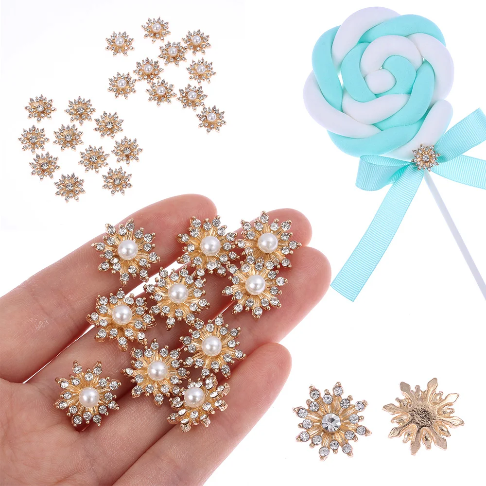 10 шт. 16 мм пуговицы Стразы в виде снежинок с плоской задней поверхностью жемчужная шпилька для волос для шитья одежды Пряжка для рукоделия инструмент для украшения одежды