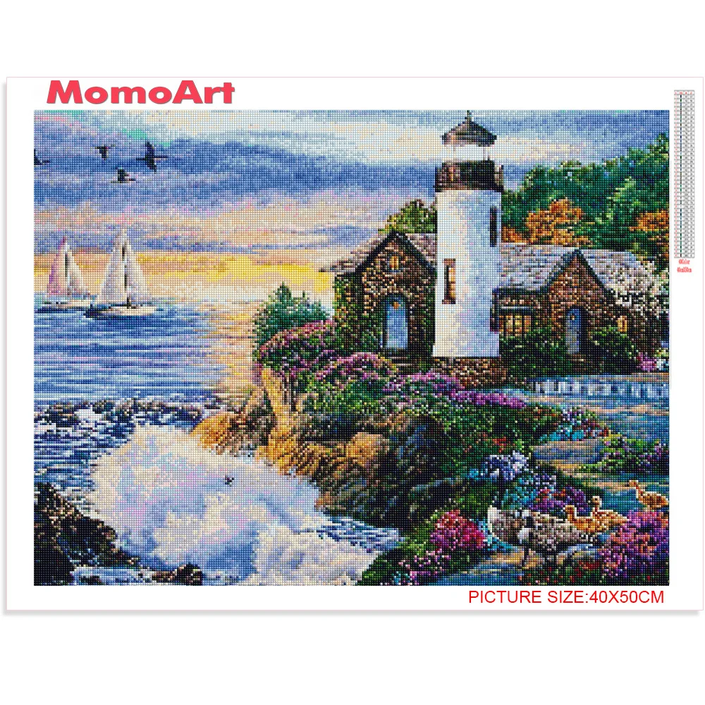 MomoArt Алмазная Живопись маяк картина стразы Алмазная мозаика Приморский вышивка крестиком Алмазная вышивка пейзаж подарок ручной работы