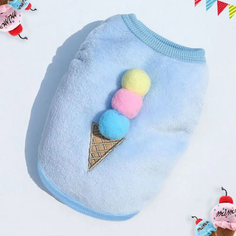 Плюшевый теплый жилет для домашних питомцев, рубашка с капюшоном, свитшот для мороженого и клубники, зимняя одежда для кошек и собак маленького и среднего размера
