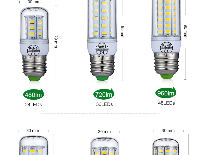 Светодиодная лампочка E27 6 шт.лот, светодиодные лампочки 220 В E14, светодиодная лампа для люстры, декоративная лампочка-кукуруза для дома, гостиной