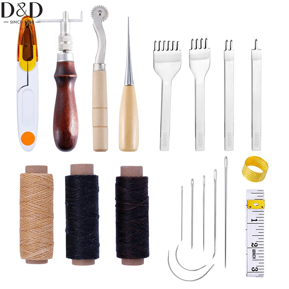 Набор инструментов для шитья кожи D D, инструменты для рукоделия и работы с кожей, набор ручных инструментов для шитья с зубчатым шилом, набор вощеных ниток, наперсток