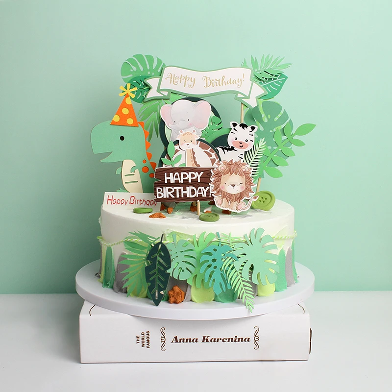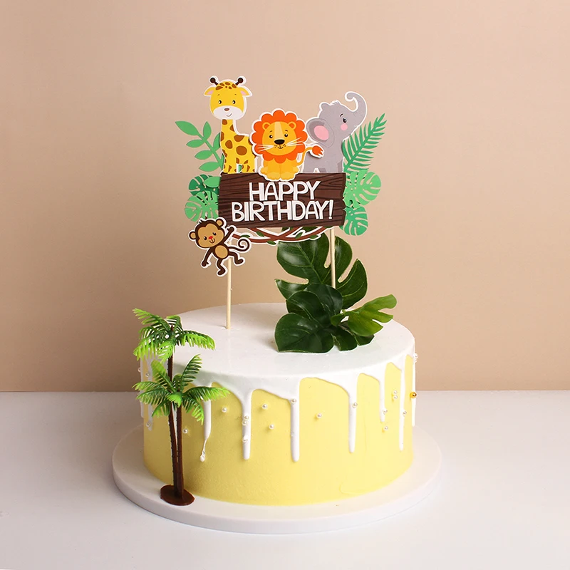 1 шт с днем рождения джунглей животных торт Топпер День Рождения ук...