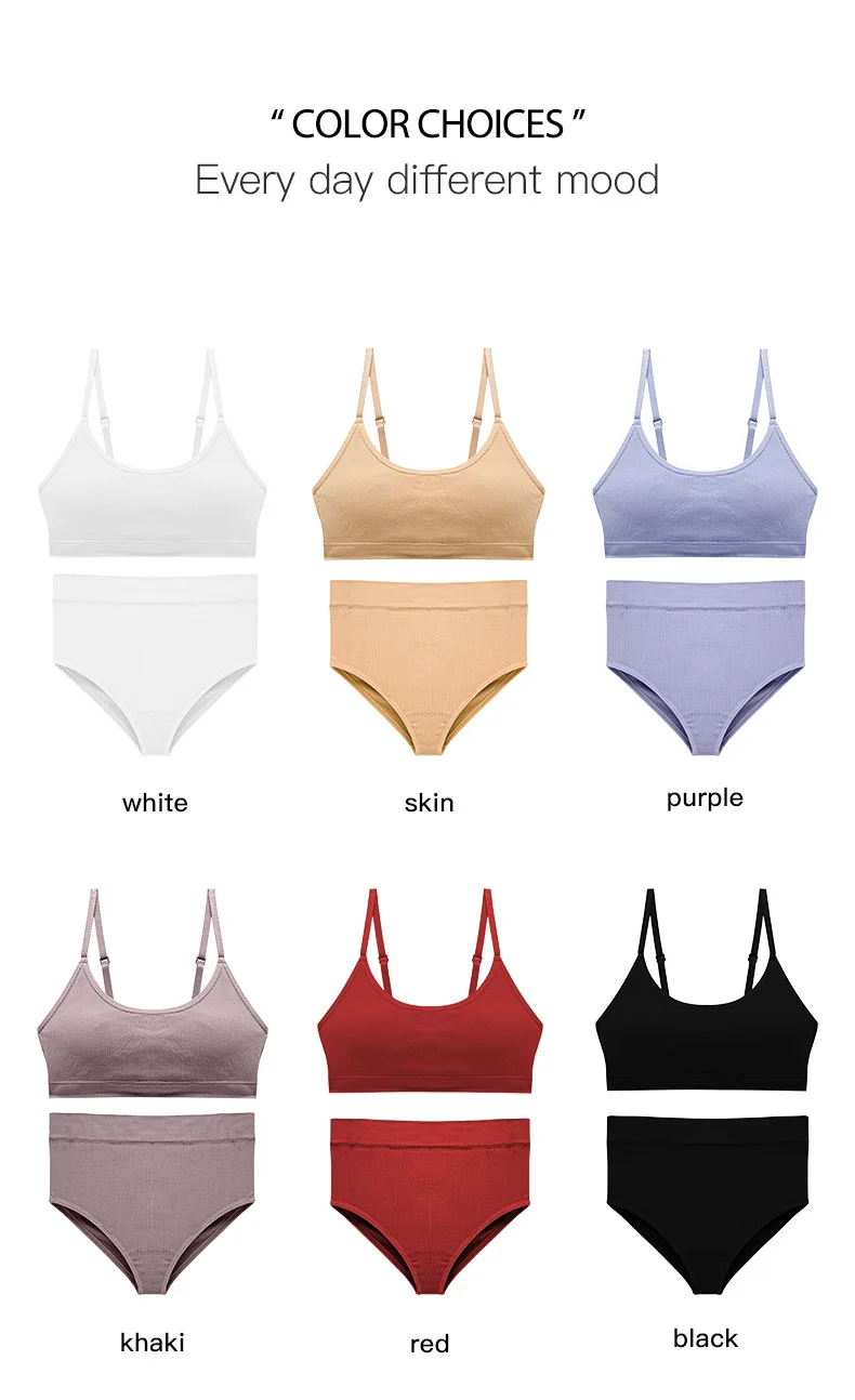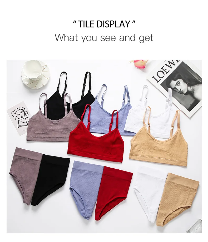 Комплект бюстгальтера из 2 предметов для женщин, сексуальное женское нижнее белье без косточек, нижнее белье в рубчик, топ, бесшовный бюстгальтер без косточек и комплект сексуальных трусиков
