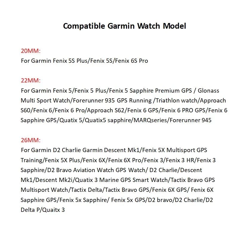 Номер моделиFor Garmin Fenix 6 6X Pro 5 5X Plus 3HR 5S 6S 26 22 20 mm strap