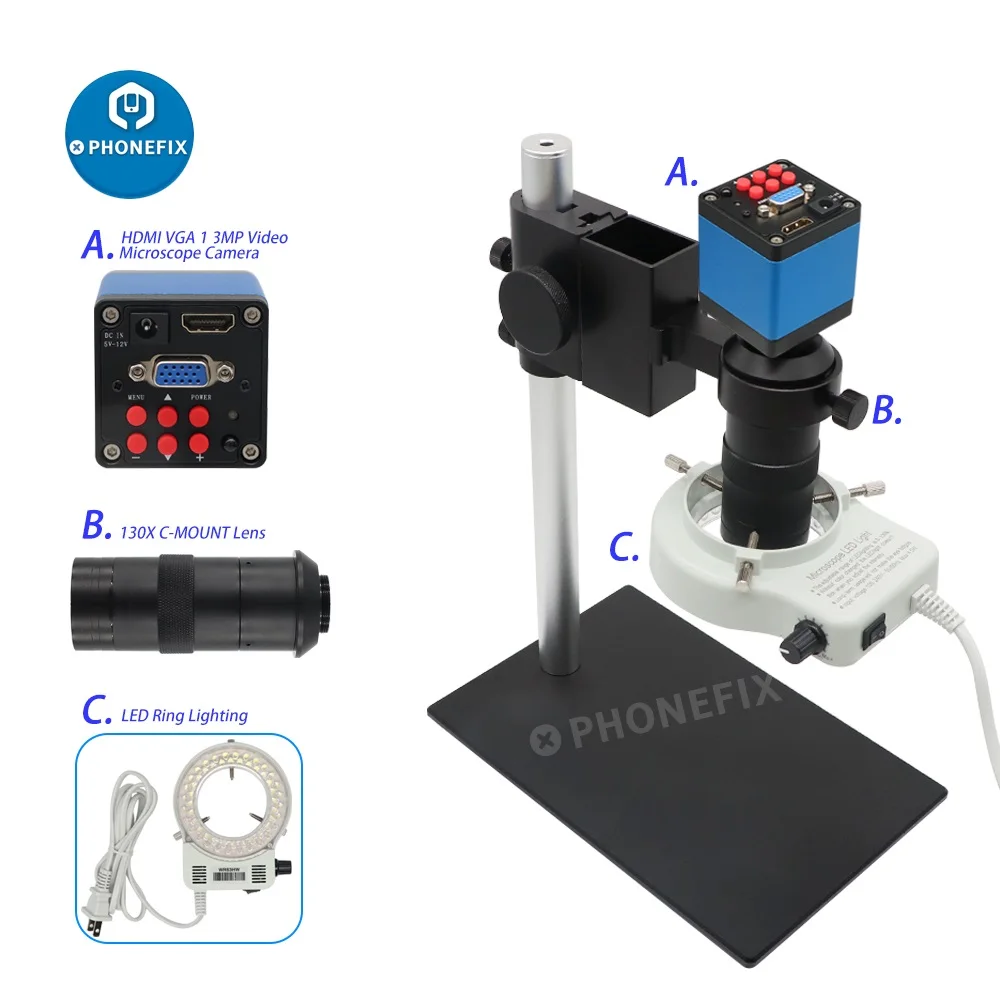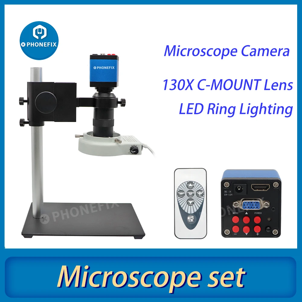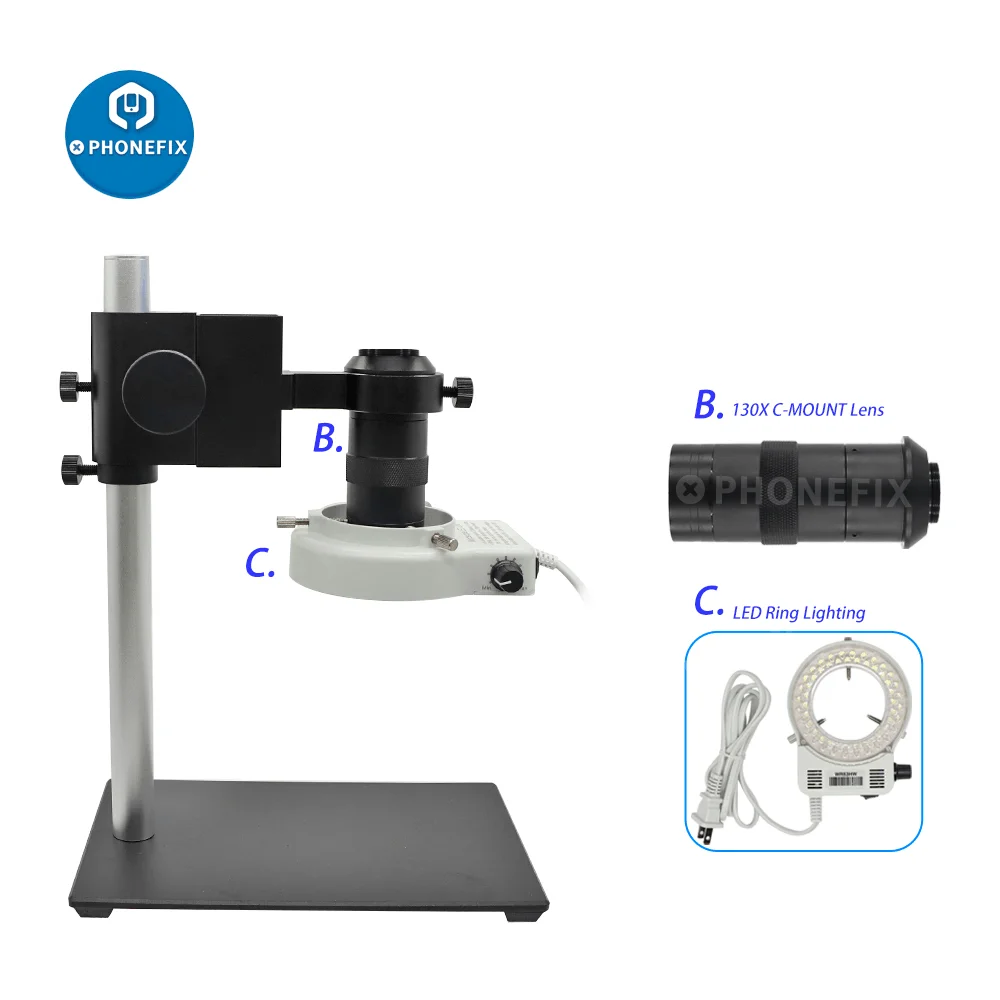 Набор объективов для микроскопа HD 13MP 60FS HDMI VGA промышленная микроскопическая камера + 130X объектив с-креплением + 56 светодиодных кольцесветильник ламп для ремонта
