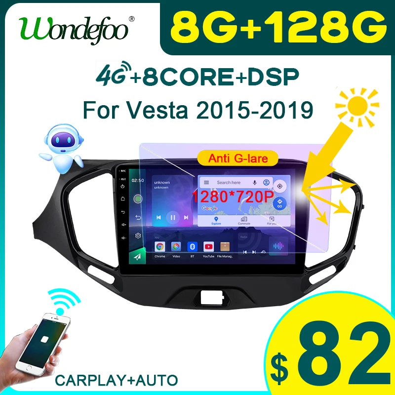 Автомагнитола Wondefoo, 2DIN, Android, мультимедийный видеоплеер для LADA Vesta Cross Sport 2015-2020, автомобильная стерео-навигация, GPS carplay