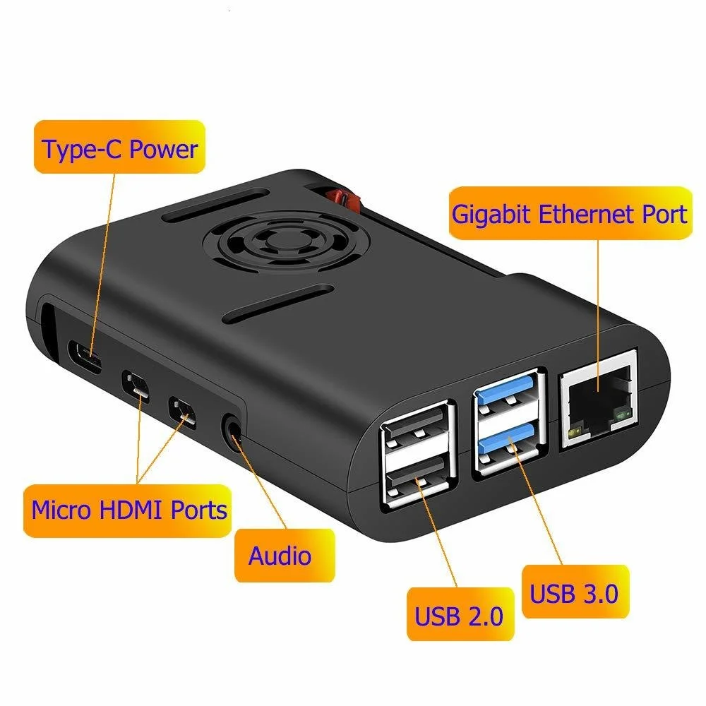 Чехол Raspberry Pi 4, чехол Raspberry Pi с охлаждающим вентилятором...