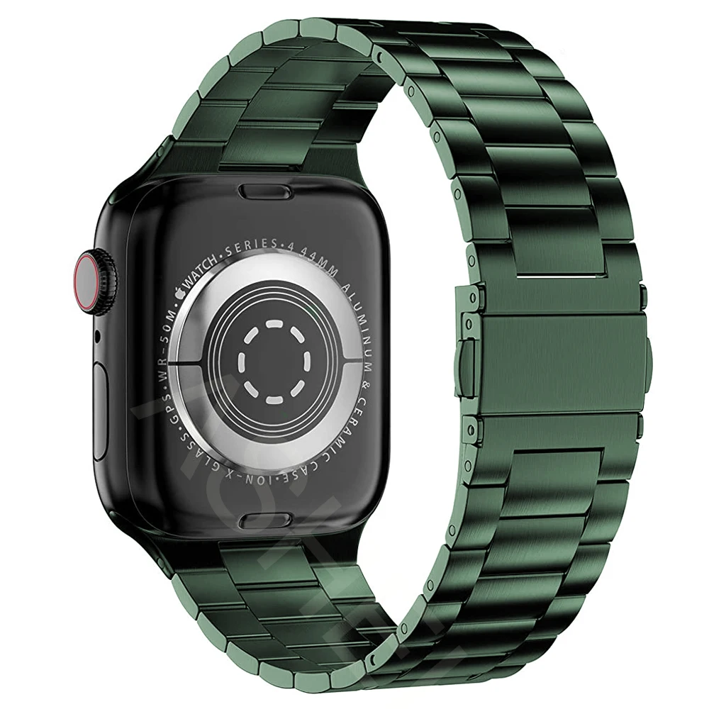 Ремешок из нержавеющей стали для Apple Watch Band 45 мм 41 мм 44 мм 40 мм 42 мм 38 мм, ультратонкий зеленый металлический браслет для iWatch 7 SE 6 5 4 3