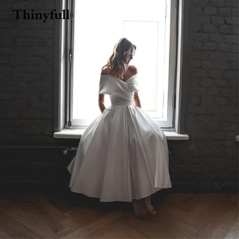 Женское свадебное платье без рукавов Thinyfull, ТРАПЕЦИЕВИДНОЕ ПЛАТЬЕ с открытыми плечами в стиле бохо, вечернее платье для невесты