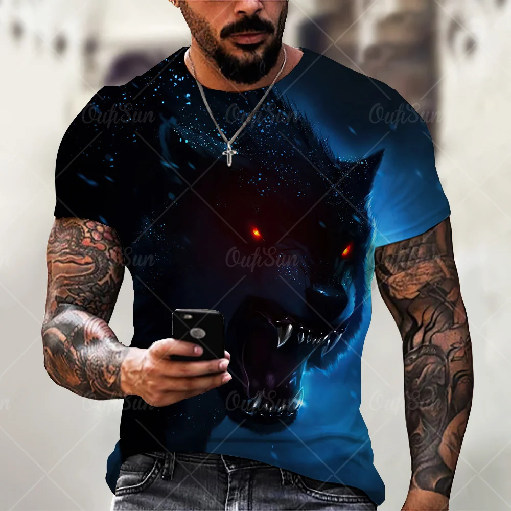 Рубашка мужская оверсайз с рисунком льва, Повседневная футболка с круглым вырезом и 3D-принтом животных, одежда в стиле Харадзюку, лето