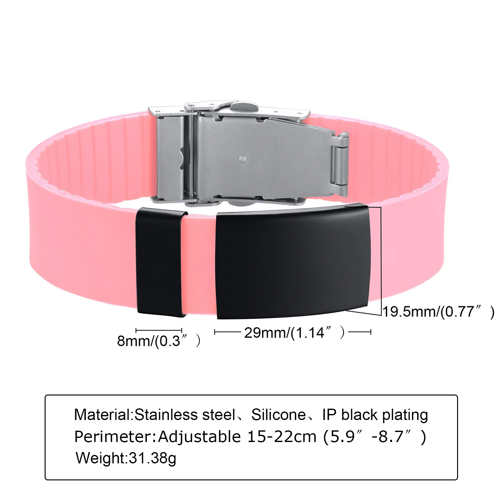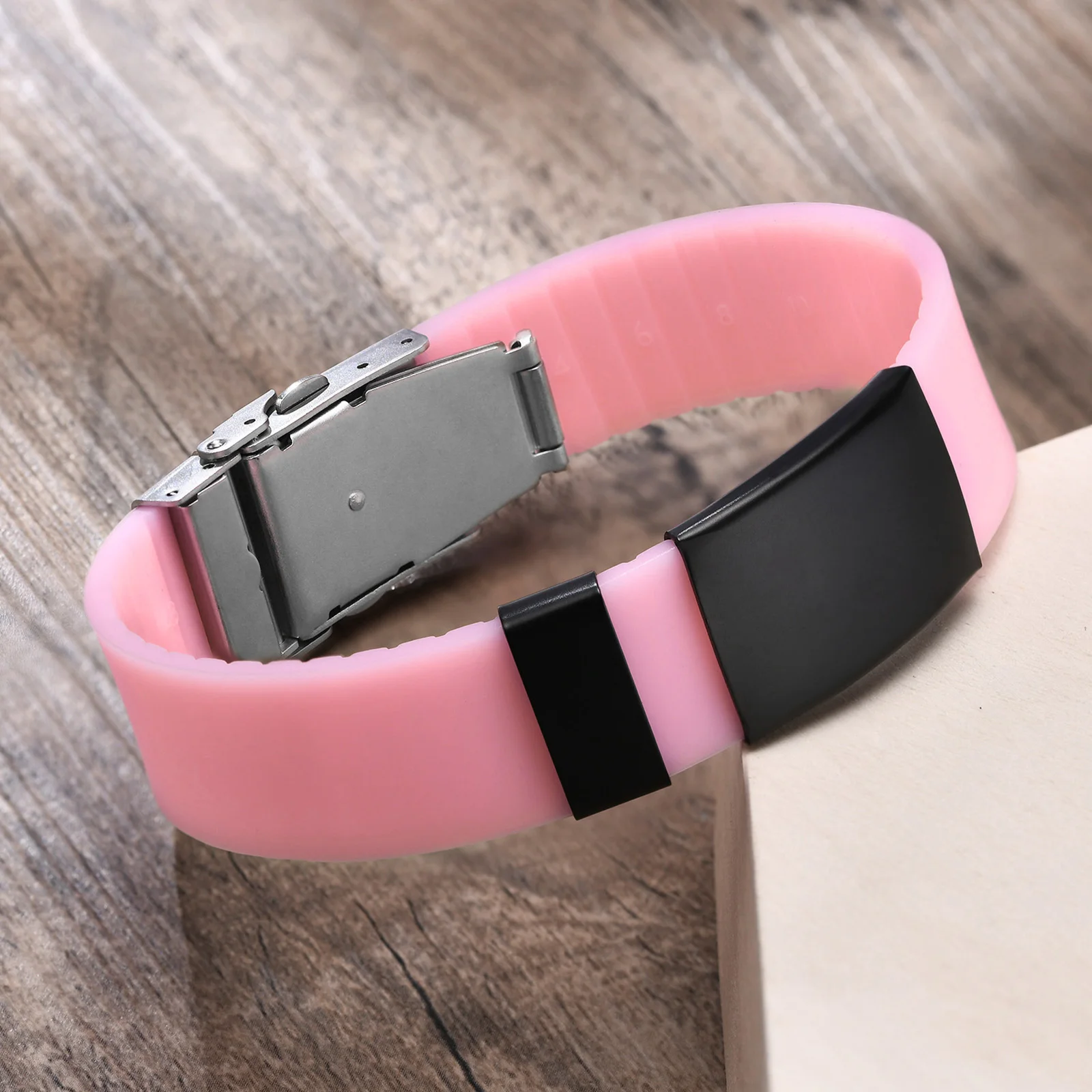 Женские браслеты с гравировкой на заказ, повседневные силиконовые браслеты с биркой из медицинского логотипа из нержавеющей стали, регулируемая длина