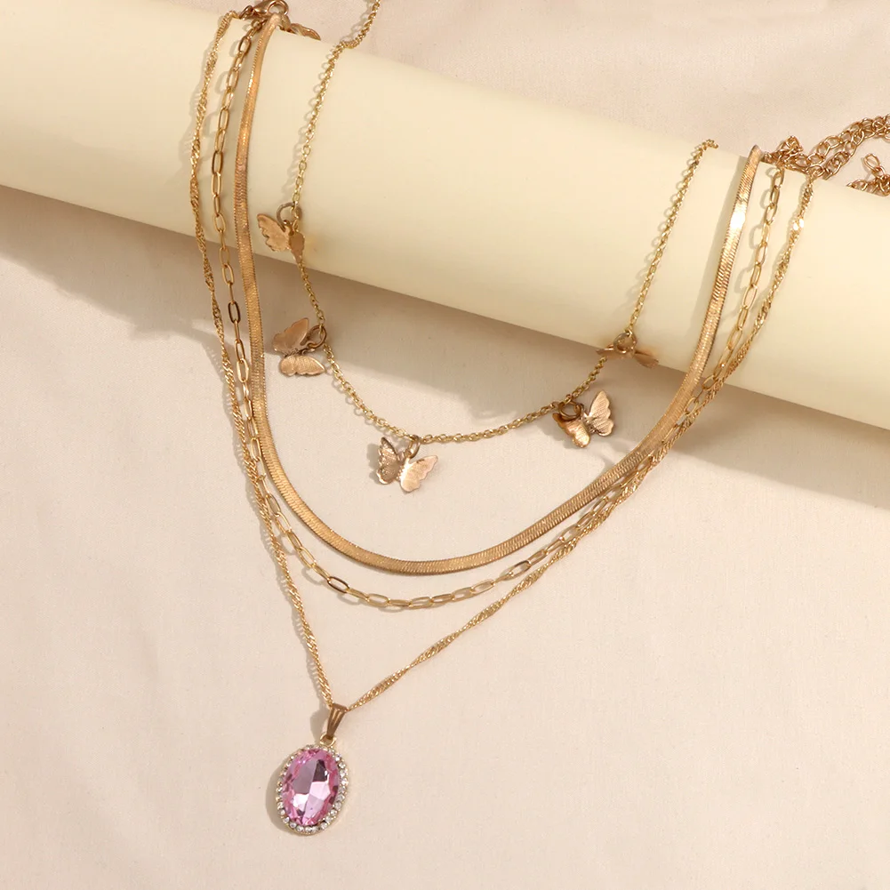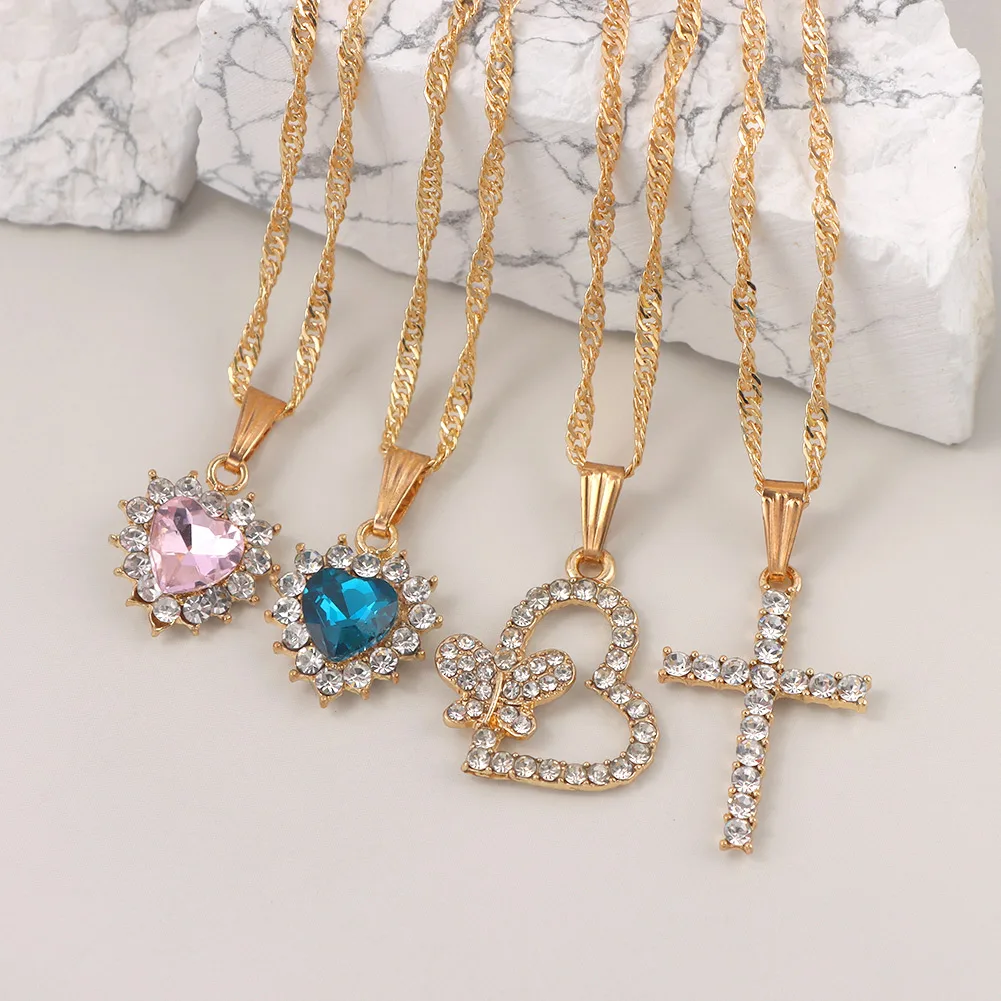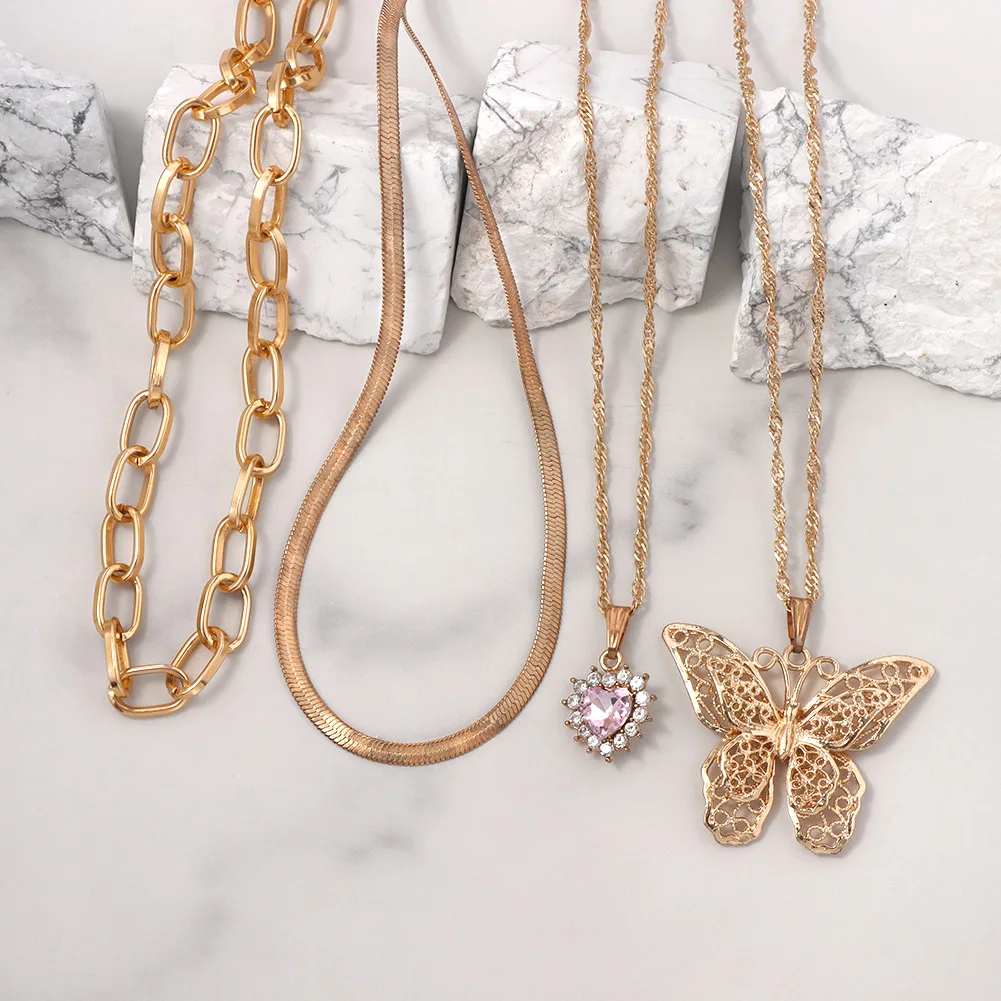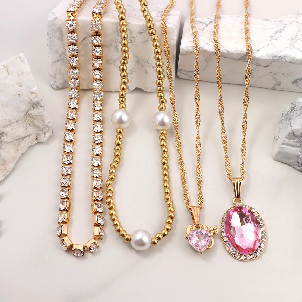 Женская многослойная цепочка Flatfoosie, ожерелье-чокер с розовыми ангельскими сердцами и кристаллами, модные ювелирные украшения