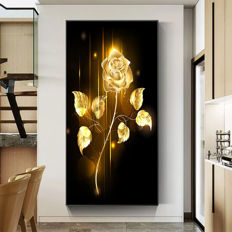 Черный золотой цветок картина интерьера большой холст картина для украшения дома гостиной настенные плакаты листы для картин