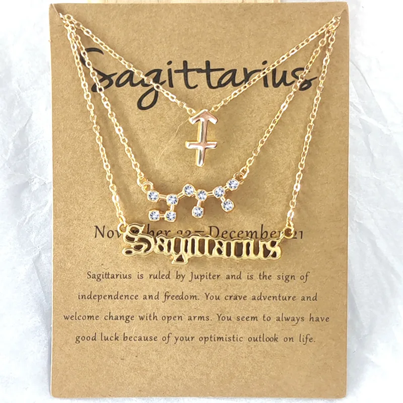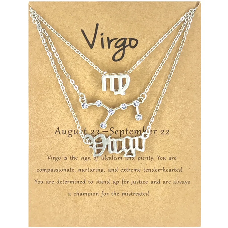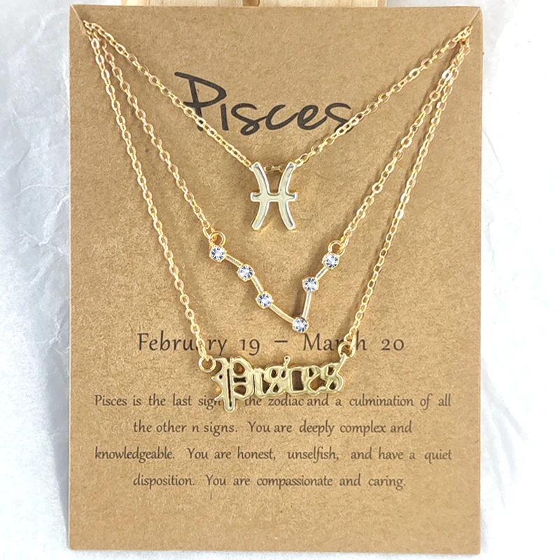 3 шт. созвездия зодиака Слои ожерелье для женщин циркониевые ожерел...