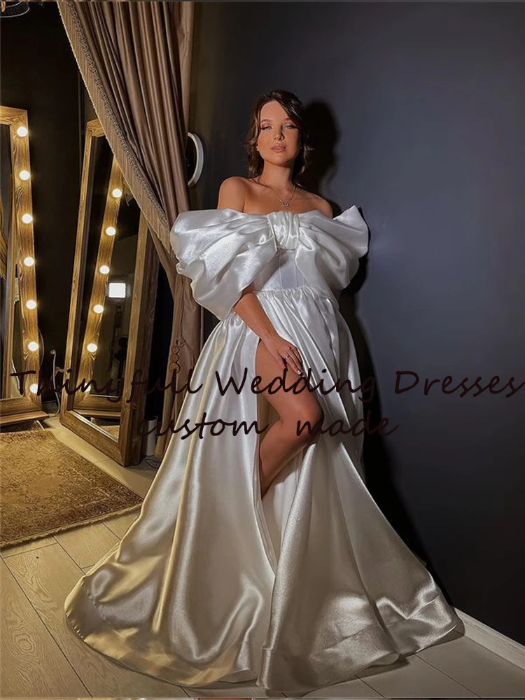Tinyfull, простое шелковое искусственное свадебное платье со съемны...