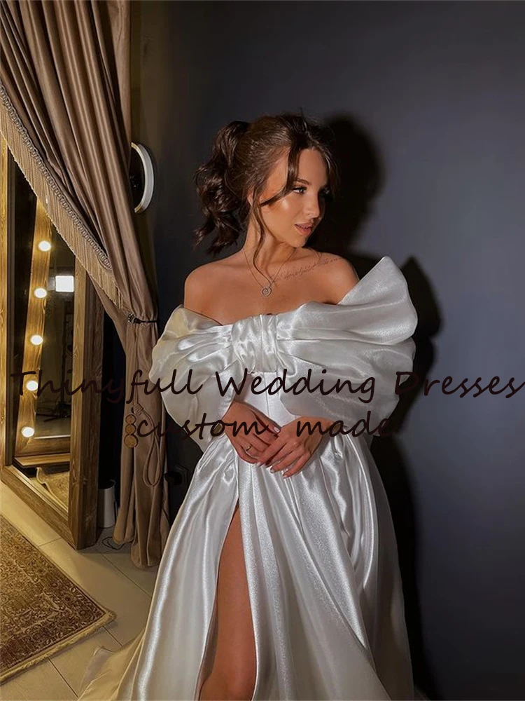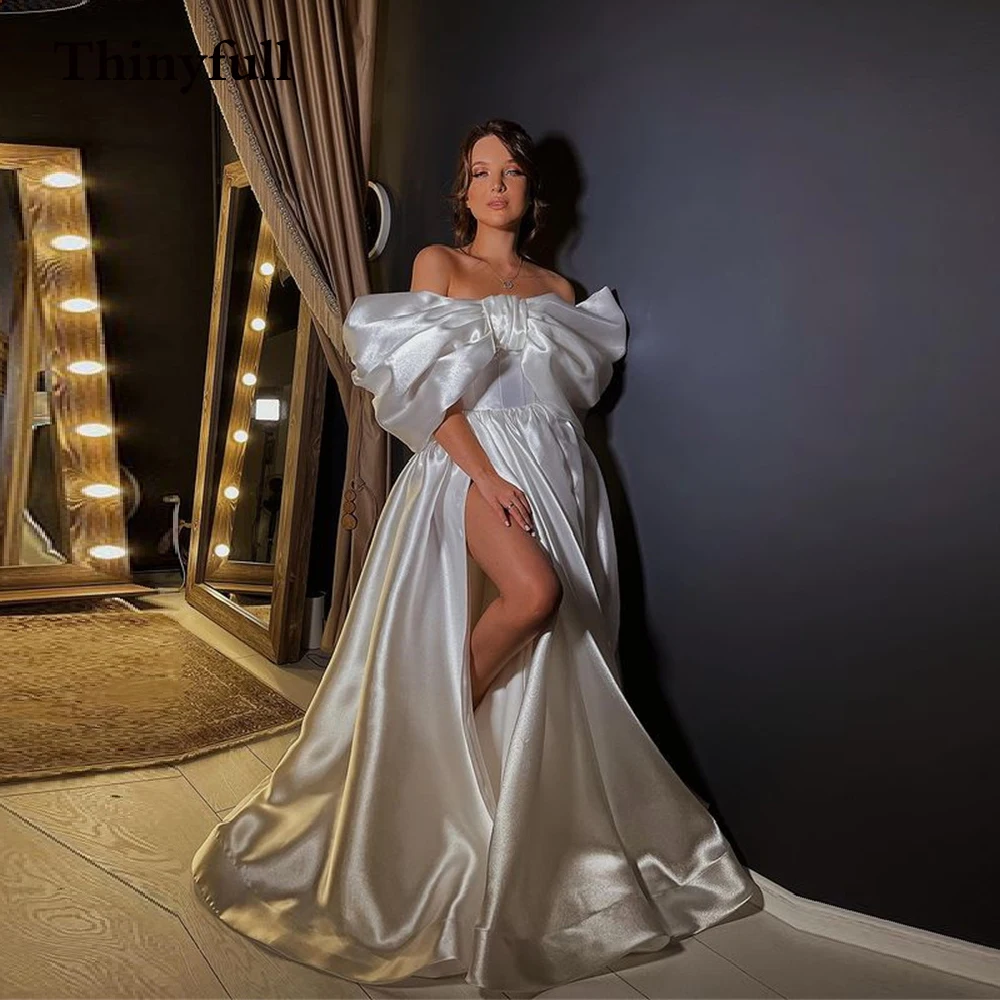 Женское свадебное платье в стиле бохо Thinyfull, с большим бантом спереди, с глубоким коротким рукавом и Боковым Разрезом, Пляжное ТРАПЕЦИЕВИДНОЕ платье принцессы для невесты, свадебное платье