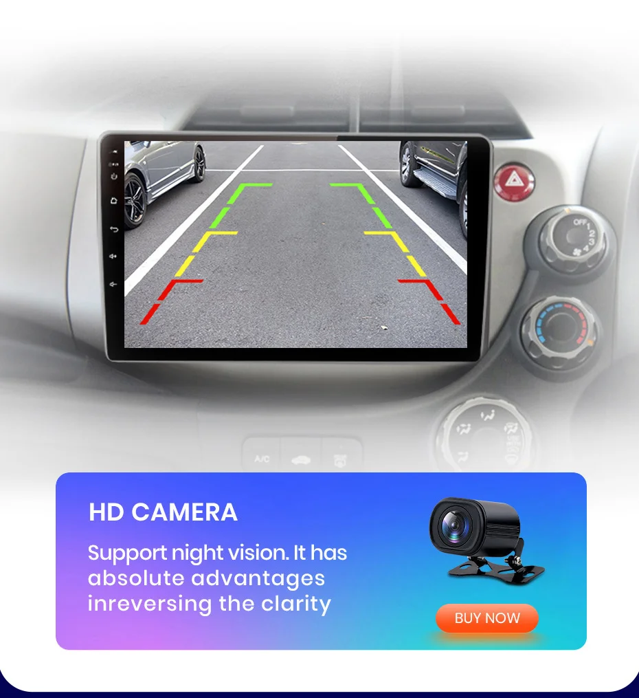 Когда автомобиль переключается на обратную передачу, экран автоматически переключается на задний вид с помощью парковочных линий, помогает вам изменить или припарковать автомобиль.(Задняя камера на изображении ниже является необязательной, и она лучше, чем обычная.)