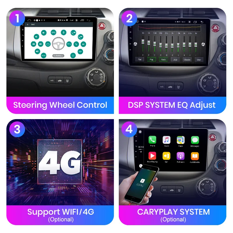 AWESAFE Android 10 AI Voice 4G Carplay RDS Автомагнитола мультимедийный GPS для HONDA FIT JAZZ 2007-2013 2din Авторадио bluetooth
