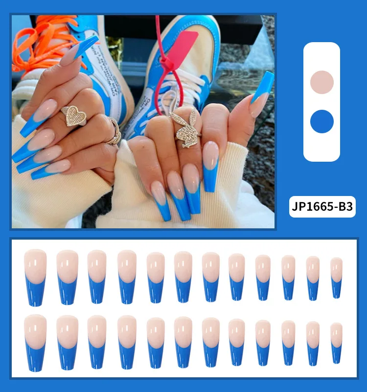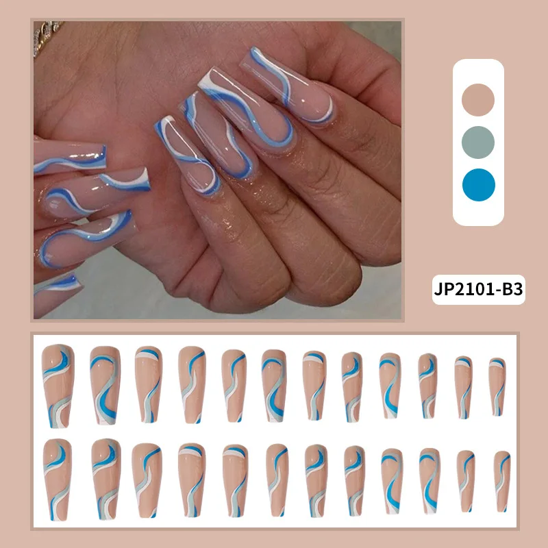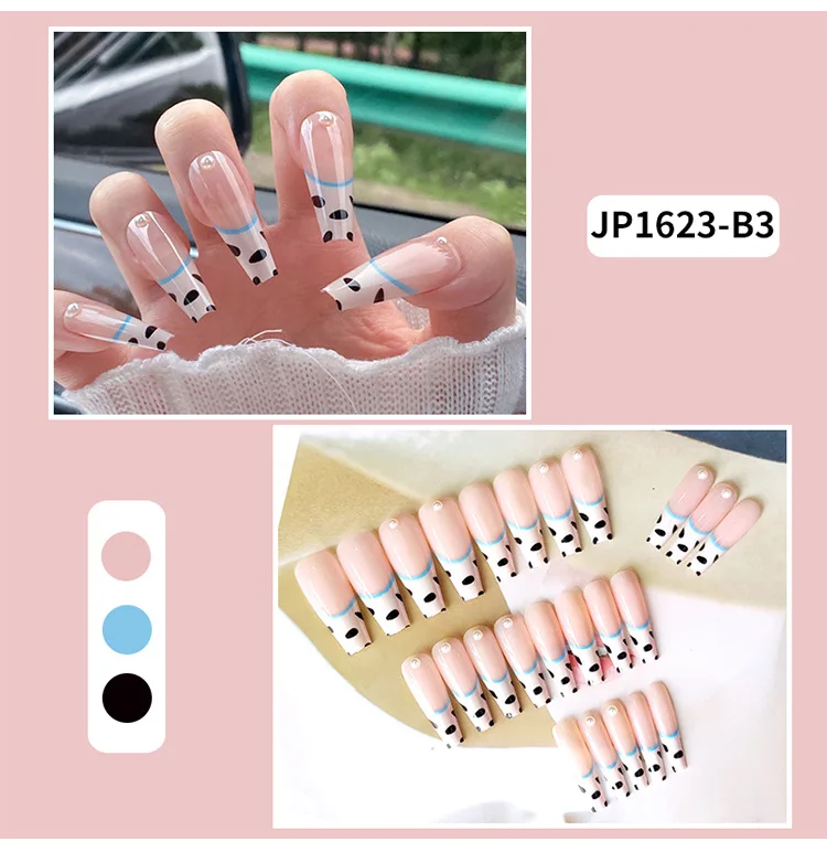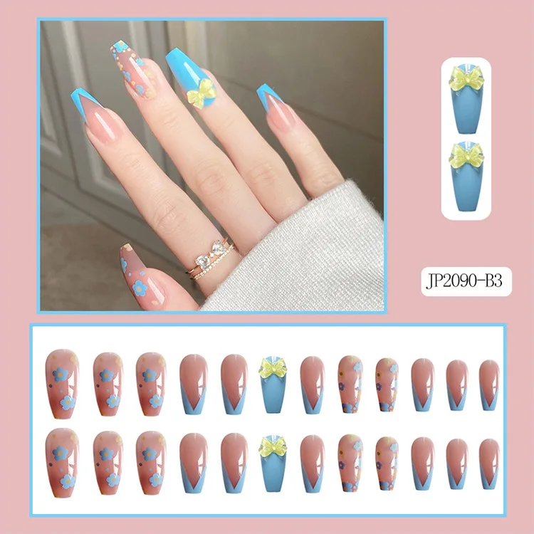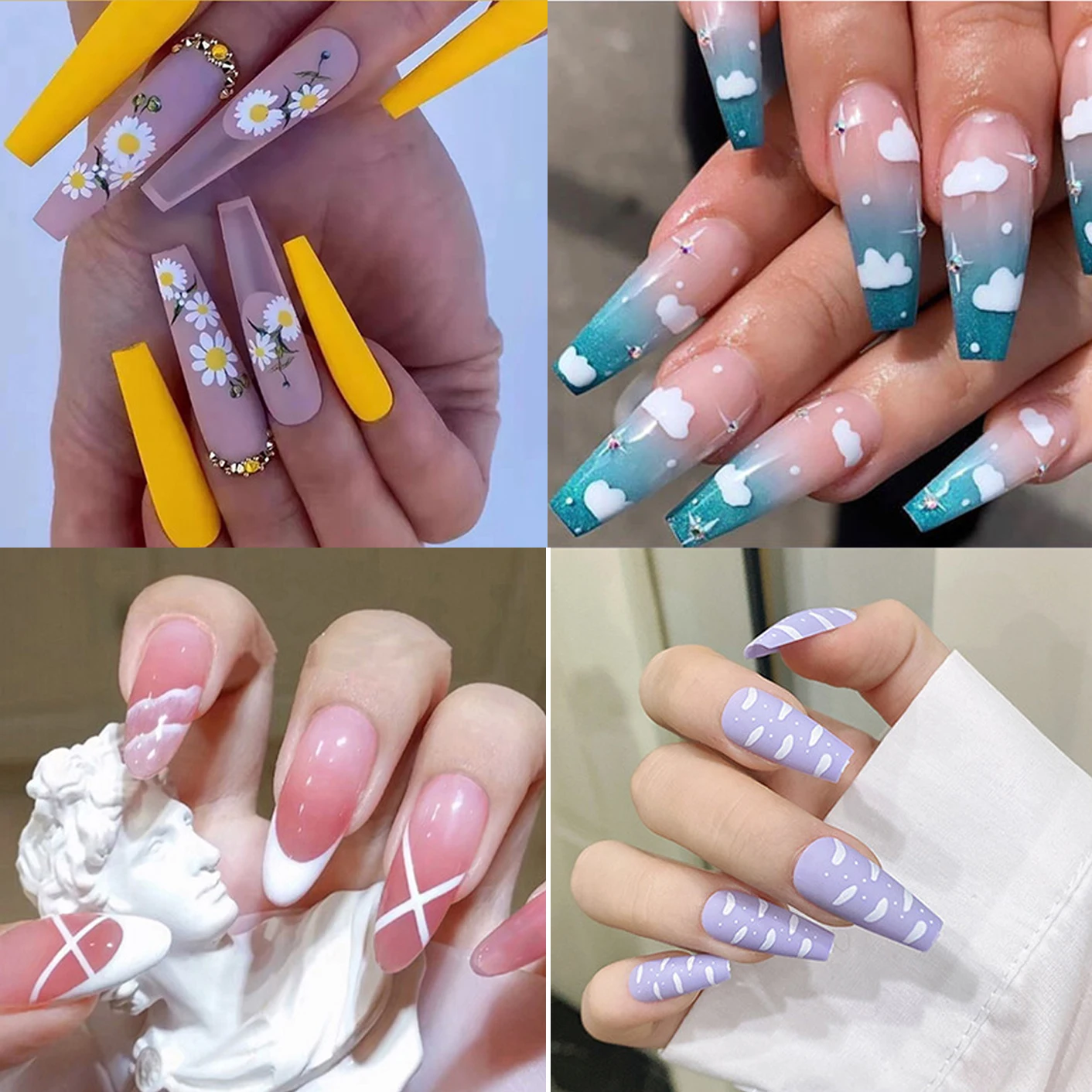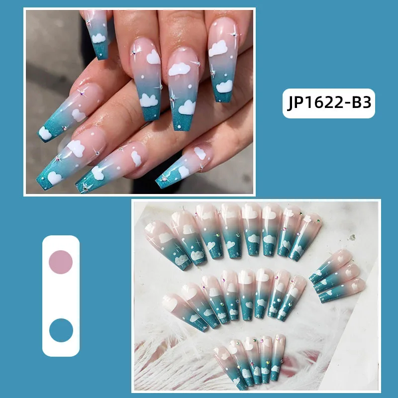 24 шт.компл. дизайн с рисунком синего неба и белого облака накладные ногти с длинным гвоздем накладные ногти с полным покрытием искусственная кожа для самостоятельного маникюра