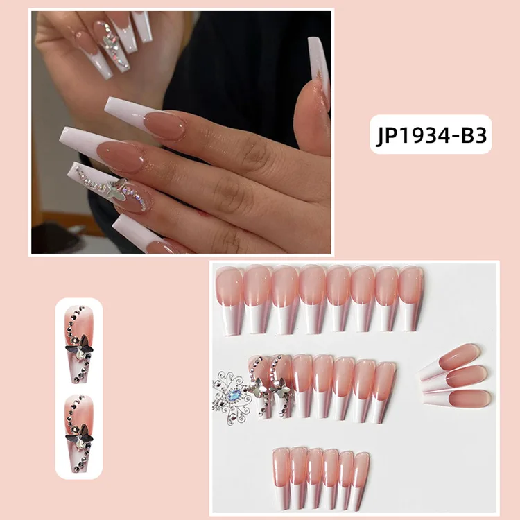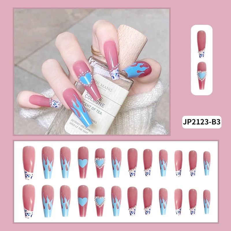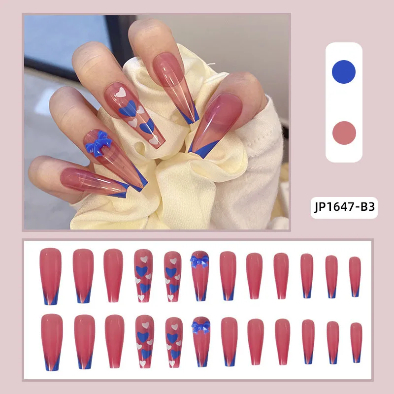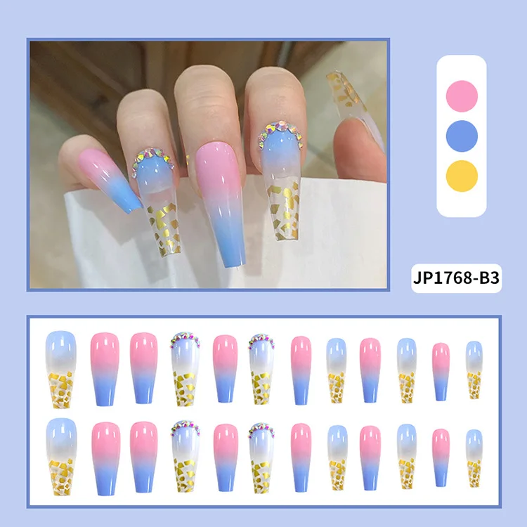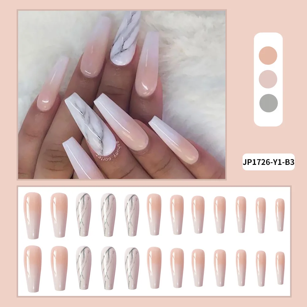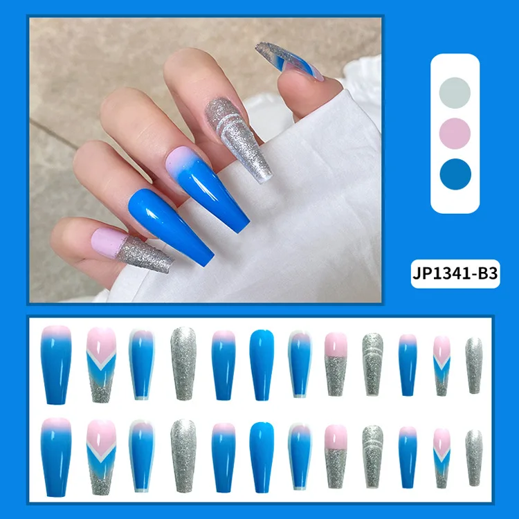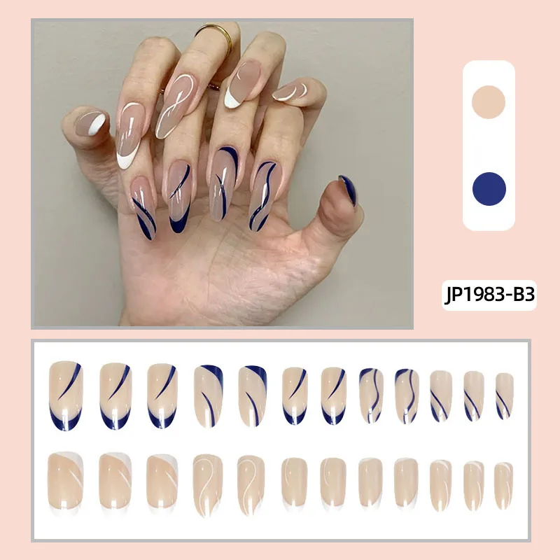 24 шт.компл. дизайн с рисунком синего неба и белого облака накладные ногти с длинным гвоздем накладные ногти с полным покрытием искусственная кожа для самостоятельного маникюра