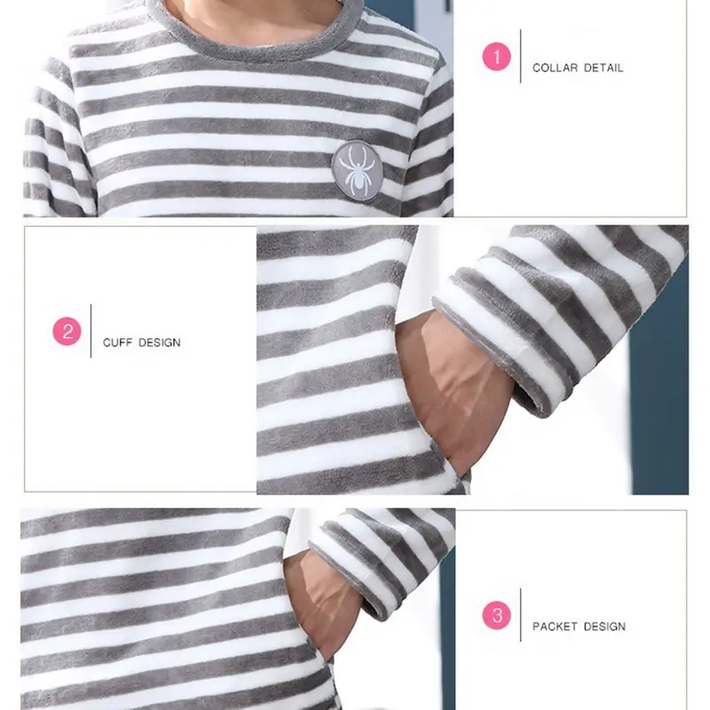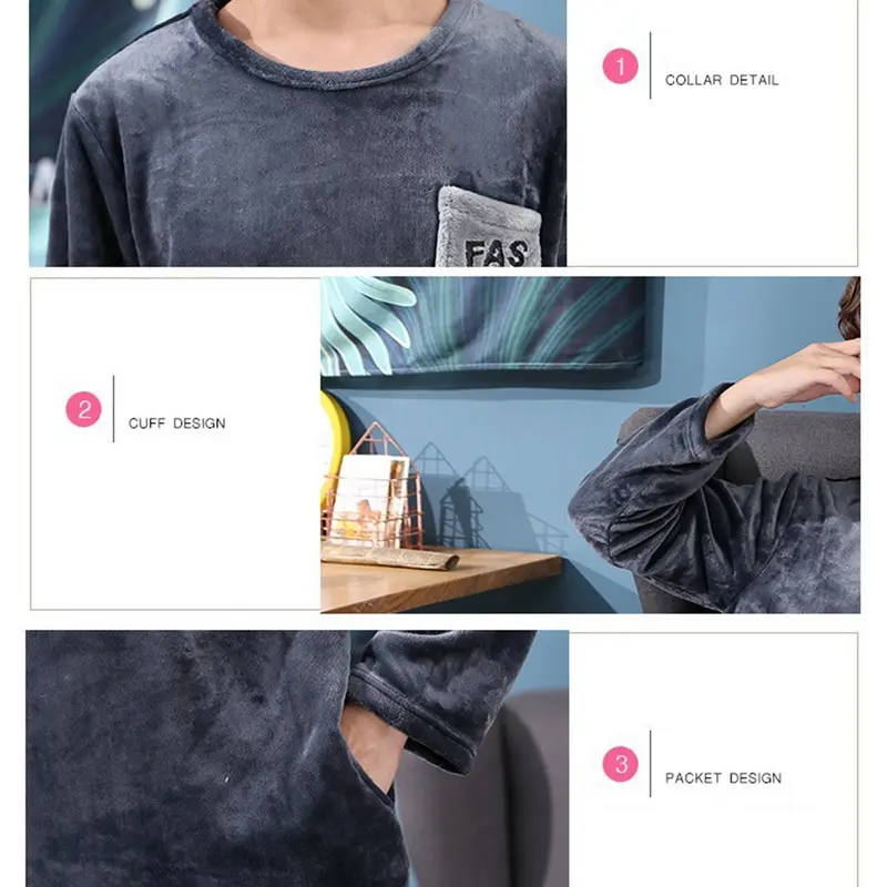 Пижамный комплект мужской, теплый фланелевый утепленный пижамный комплект, одежда для сна с длинным рукавом, топ и штаны, домашняя одежда для отдыха, размеры до 3XL, Осень-зима